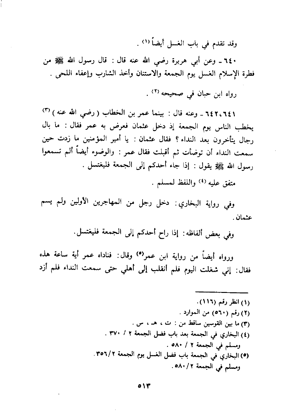 626 - وَعنهُ كَانَ رَسُول الله صَلَّى اللَّهُ عَلَيْهِ وَسَلَّم َ لَا يُطِيل الموعظة يَوْم الْجُمُعَة إِنَّمَا هن كَلِمَات يسيرات رَوَاهُ أَبُو دَاوُد بِإِسْنَاد صَحِيح لَا جرم أخرجه الْحَاكِم وَقَالَ صَحِيح عَلَى شَرط مُسلم