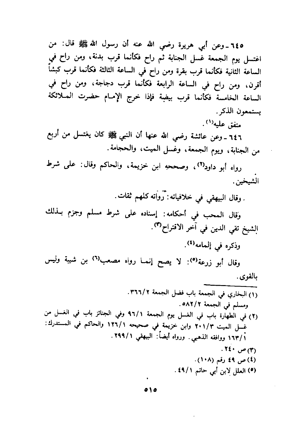 631 - وَعَن الحكم بن حزن رَضِيَ اللَّهُ عَنْه انه عَلَيْهِ السَّلَام قَامَ فِي خطْبَة الْجُمُعَة متوكئا عَلَى عَصا أو قَوس فَحَمدَ الله واثنى عَلَيْهِ كَلِمَات خفيفات طَيّبَات مباركات ثمَّ قَالَ أَيهَا النَّاس إِنَّكُم لن تُطِيقُوا أَو لن تَفعلُوا كل مَا أمرْتُم بِهِ وَلَكِن سددوا وَأَبْشِرُوا رَوَاهُ أَبُو دَاوُد وَلم يُضعفهُ وَفِي سَنَده شهَاب بن خرَاش وَثَّقَهُ ابْن الْمُبَارك وَأَبُو زرْعَة وَغَيرهمَا وَقَالَ ابْن حبَان يخطىء كثيرا وَقَالَ ابْن عدي فِي بعض رِوَايَته مَا يُنكر وَلَا اعرف للْمُتَقَدِّمين فِيهِ كلَاما وَأما ابْن السكن فَأخْرج هَذَا الحَدِيث فِي صحاحه