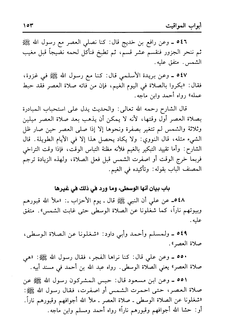 549- وَلِمُسْلِمٍ وَأَحْمَدَ وَأَبِي دَاوُد: «شَغَلُونَا عَنْ الصَّلَاةِ الْوُسْطَى صَلَاةِ الْعَصْرِ» .
