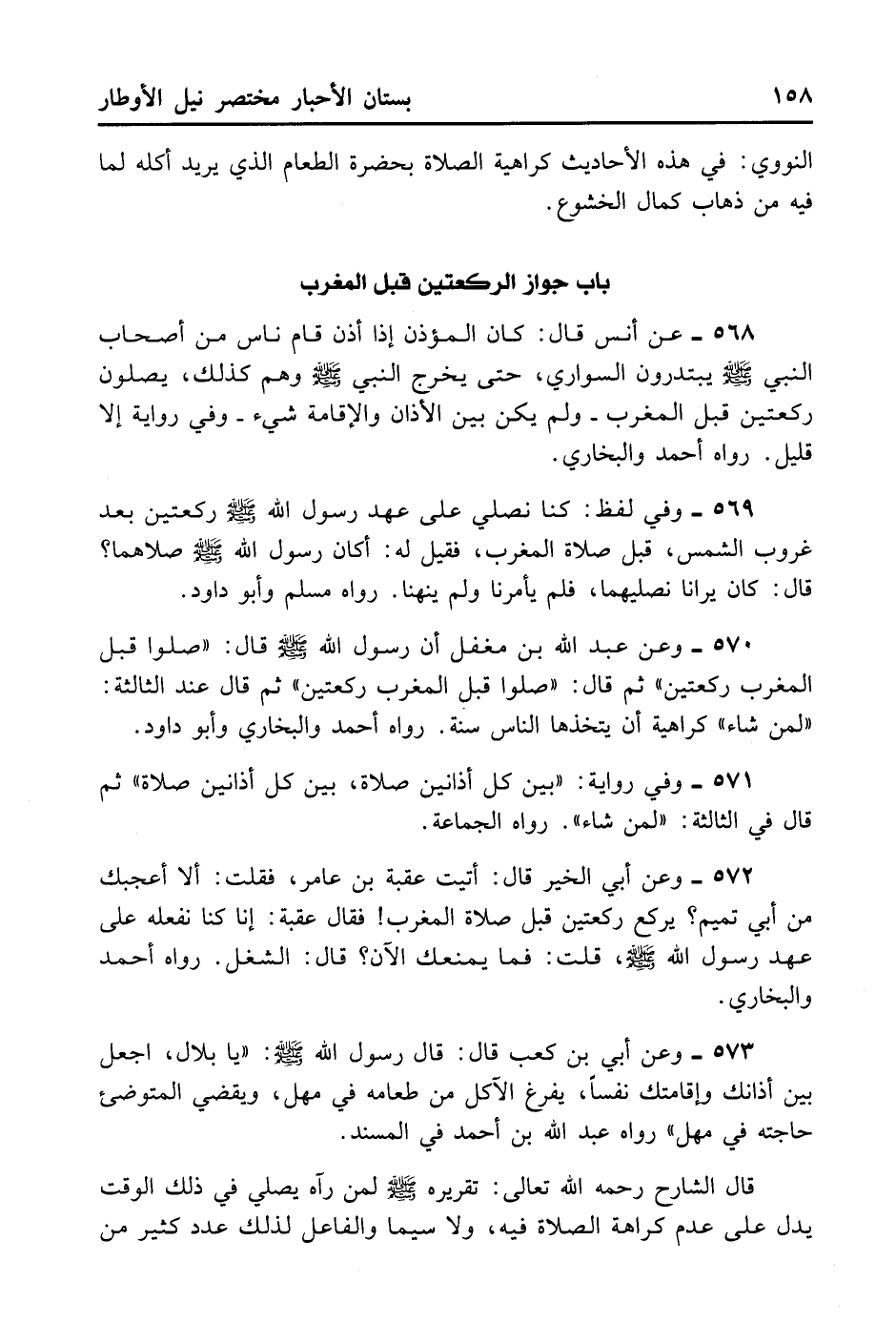 572- وَعَنْ أَبِي الْخَيْرِ قَالَ: أَتَيْتُ عُقْبَةَ بْنَ عَامِرٍ، فَقُلْتُ لَهُ: أَلَا أُعَجِّبُكَ مِنْ أَبِي تَمِيمٍ؟ يَرْكَعُ رَكْعَتَيْنِ قَبْلَ صَلَاةِ الْمَغْرِبِ! فَقَالَ عُقْبَةُ: إنَّا كُنَّا نَفْعَلُهُ عَلَى عَهْدِ رَسُولِ اللَّهِ - صلى الله عليه وسلم - قُلْت: فَمَا يَمْنَعُكَ الْآنَ؟ قَالَ: الشَّغْلُ. رَوَاهُ أَحْمَدُ وَالْبُخَارِيُّ.