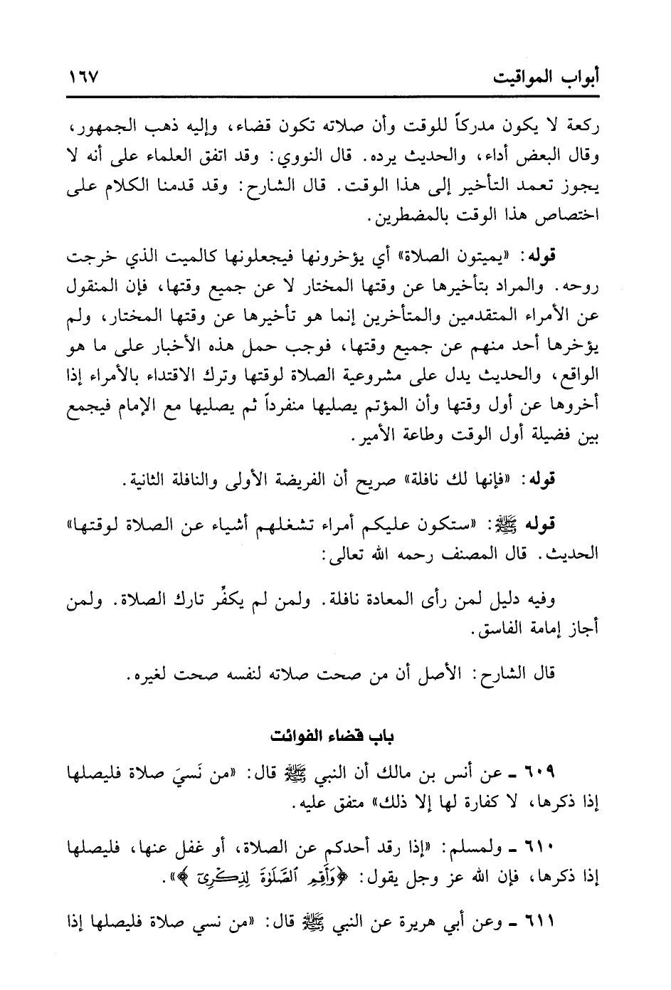 قَوْلُهُ - صلى الله عليه وسلم -: «سَتَكُونُ عَلَيْكُمْ بَعْدِي أُمَرَاءُ تَشْغَلُهُمْ أَشْيَاءُ عَنْ الصَّلَاةِ ... لِوَقْتِهَا» . الْحَدِيث. قَالَ الْمُصَنِّفُ رَحِمَهُ اللَّهُ تَعَالَى: