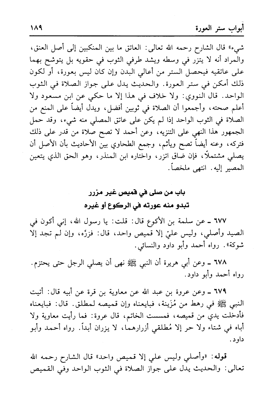 677- عَنْ سَلَمَةَ بْنِ الْأَكْوَعِ قَالَ: قُلْت: يَا رَسُولَ اللَّهِ إنِّي أَكُونُ فِي الصَّيْدِ وَأُصَلِّي وَلَيْسَ عَلَيَّ إلَّا قَمِيصٌ وَاحِدٌ قَالَ: «فَزُرَّهُ وَإِنْ لَمْ تَجِدْ إلَّا شَوْكَةً» . رَوَاهُ أَحْمَدُ وَأَبُو دَاوُد وَالنَّسَائِيُّ.
