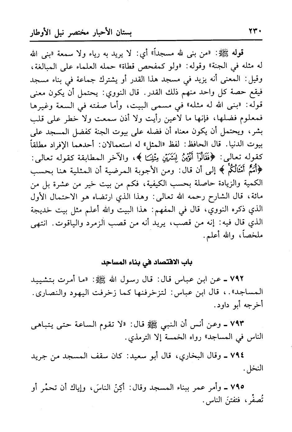 793- وَعَنْ أَنَسٍ أَنَّ النَّبِيَّ - صلى الله عليه وسلم - قَالَ: «لَا تَقُومُ السَّاعَةُ حَتَّى يَتَبَاهَى النَّاسُ فِي الْمَسَاجِدِ» . رَوَاهُ الْخَمْسَةُ إلَّا التِّرْمِذِيُّ.