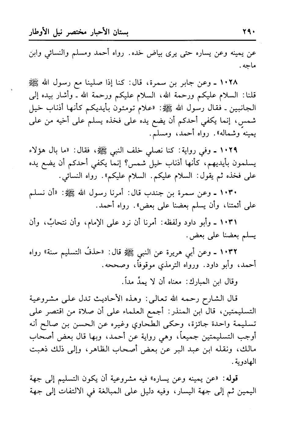 1030- وَعَنْ سَمُرَةَ بْنِ جُنْدَبٍ قَالَ: أَمَرَنَا رَسُولُ اللَّهِ - صلى الله عليه وسلم - أَنْ نُسَلِّمَ عَلَى أَئِمَّتِنَا وَأَنْ يُسَلِّمَ بَعْضُنَا عَلَى بَعْضٍ. رَوَاهُ أَحْمَدُ.