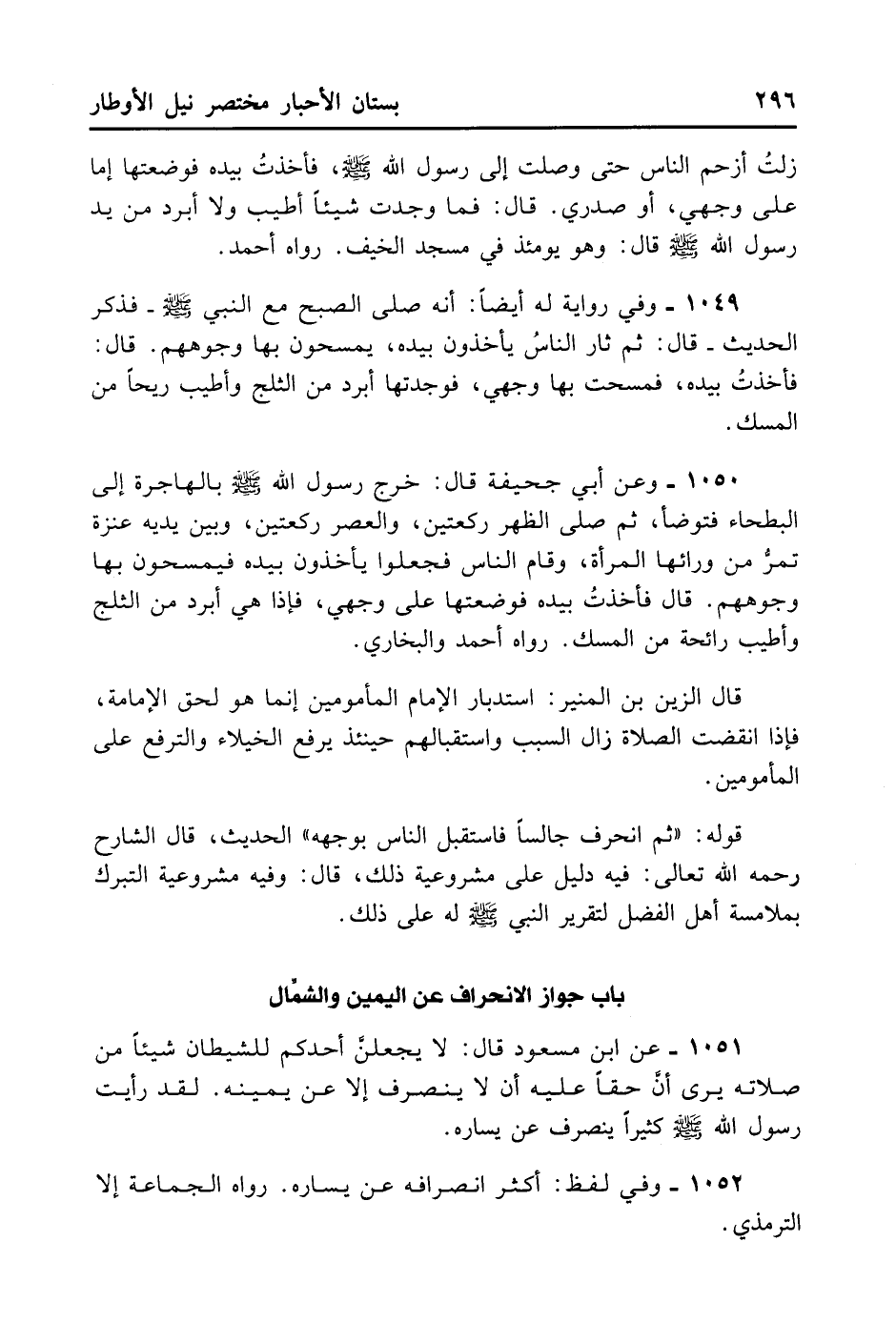 1051- عَنْ ابْنِ مَسْعُودٍ قَالَ: لَا يَجْعَلَنَّ أَحَدُكُمْ لِلشَّيْطَانِ شَيْئًا مِنْ صَلَاتِهِ يَرَى أَنَّ حَقًّا عَلَيْهِ أَنْ لَا يَنْصَرِفَ إلَّا عَنْ يَمِينِهِ، لَقَدْ رَأَيْت رَسُولَ اللَّهِ - صلى الله عليه وسلم - كَثِيرًا يَنْصَرِفُ عَنْ يَسَارِهِ.