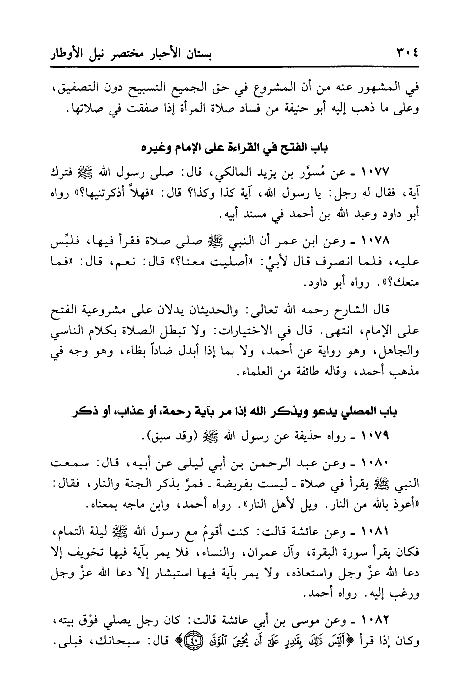 قَالَ الشَّارِحُ رَحِمَهُ اللَّهُ تَعَالَى: وَالْحَدِيثَانِ يَدُلَّانِ عَلَى مَشْرُوعِيَّةِ الْفَتْحِ عَلَى الْإِمَامِ. انْتَهَى. قَالَ فِي الاخْتِيَارَات: وَلا تَبْطُلُ الصَّلاةَ بِكَلامِ النَّاسِي وَالْجَاهِلِ. وَهُوَ رِوَايَةٌ عَنْ أَحْمَدٍ وَلا بِمَا إِذَا أُبْدِلَ ضَادًا بِظَاءٍ وَهُوَ وَجْهٌ فِي مَذْهَبِ أَحْمَدٍ، وَقَالَهُ طَائِفَةٌ مِنَ الْعُلَمَاءِ.