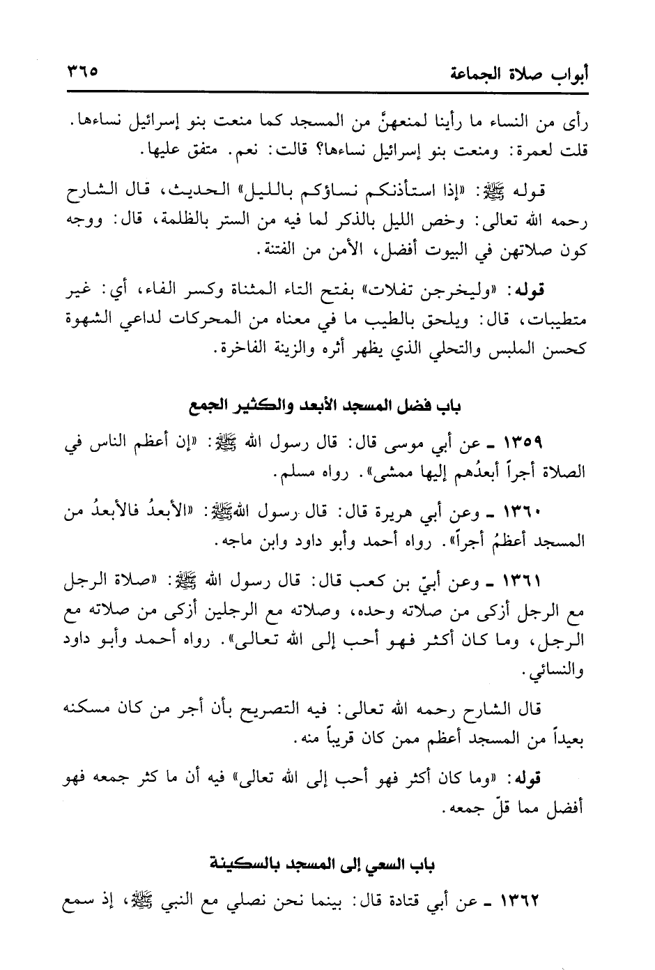 1359- عَنْ أَبِي مُوسَى قَالَ: قَالَ رَسُولُ اللَّهِ - صلى الله عليه وسلم -: «إنَّ أَعْظَمَ النَّاسِ فِي الصَّلَاةِ أَجْرًا أَبْعَدُهُمْ إلَيْهَا مَمْشًى» . رَوَاهُ مُسْلِمٌ.