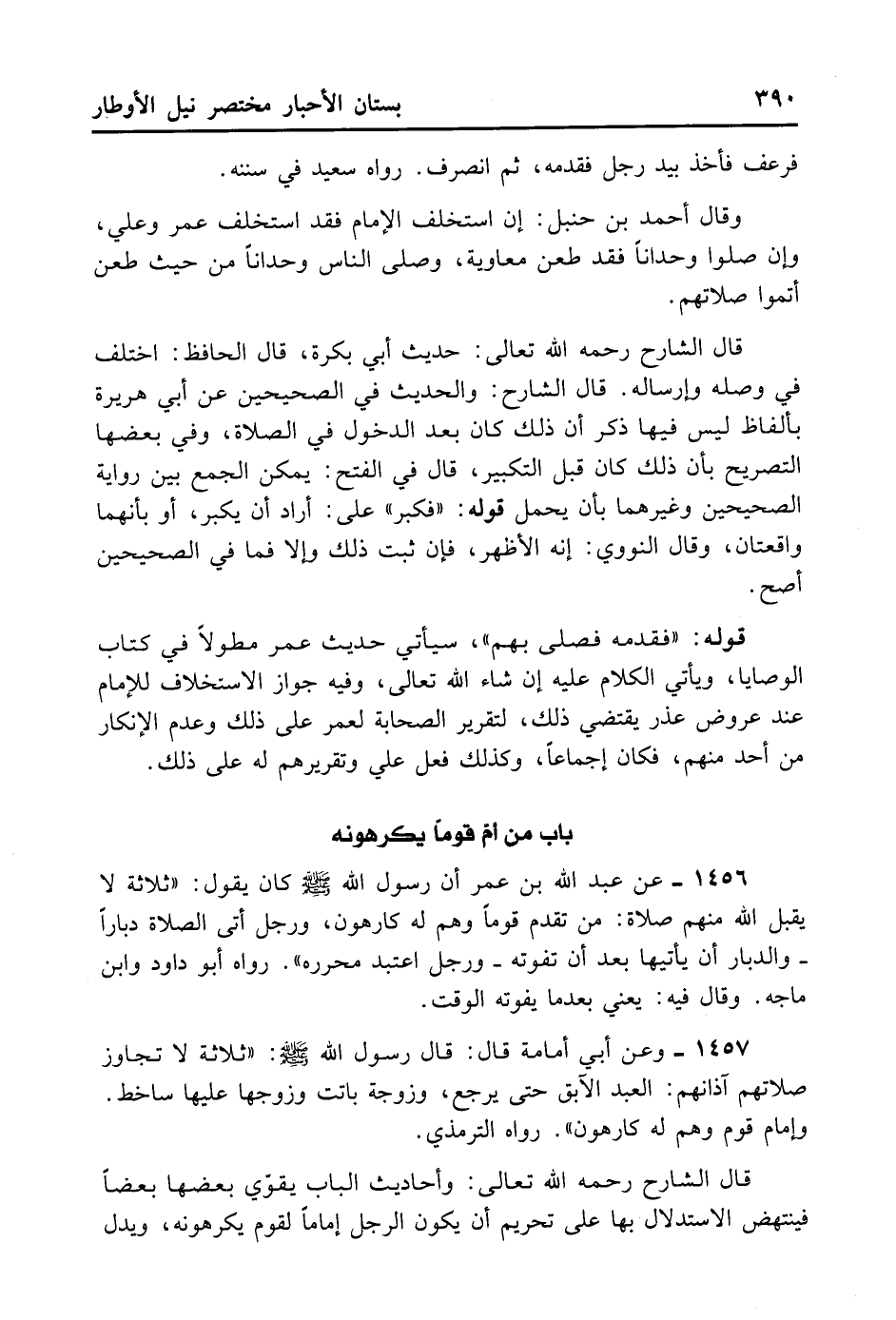 قَالَ الشَّارِحُ رَحِمَهُ اللَّهُ تَعَالَى: وَأَحَادِيث الْبَاب يُقَوِّي بَعْضهَا بَعْضَا، فَيَنْتَهِضُ لِلِاسْتِدْلَالِ بِهَا عَلَى تَحْرِيم أَنْ يَكُون الرَّجُل إمَامَا لِقَوْمٍ يَكْرَهُونَهُ. وَيَدُلّ