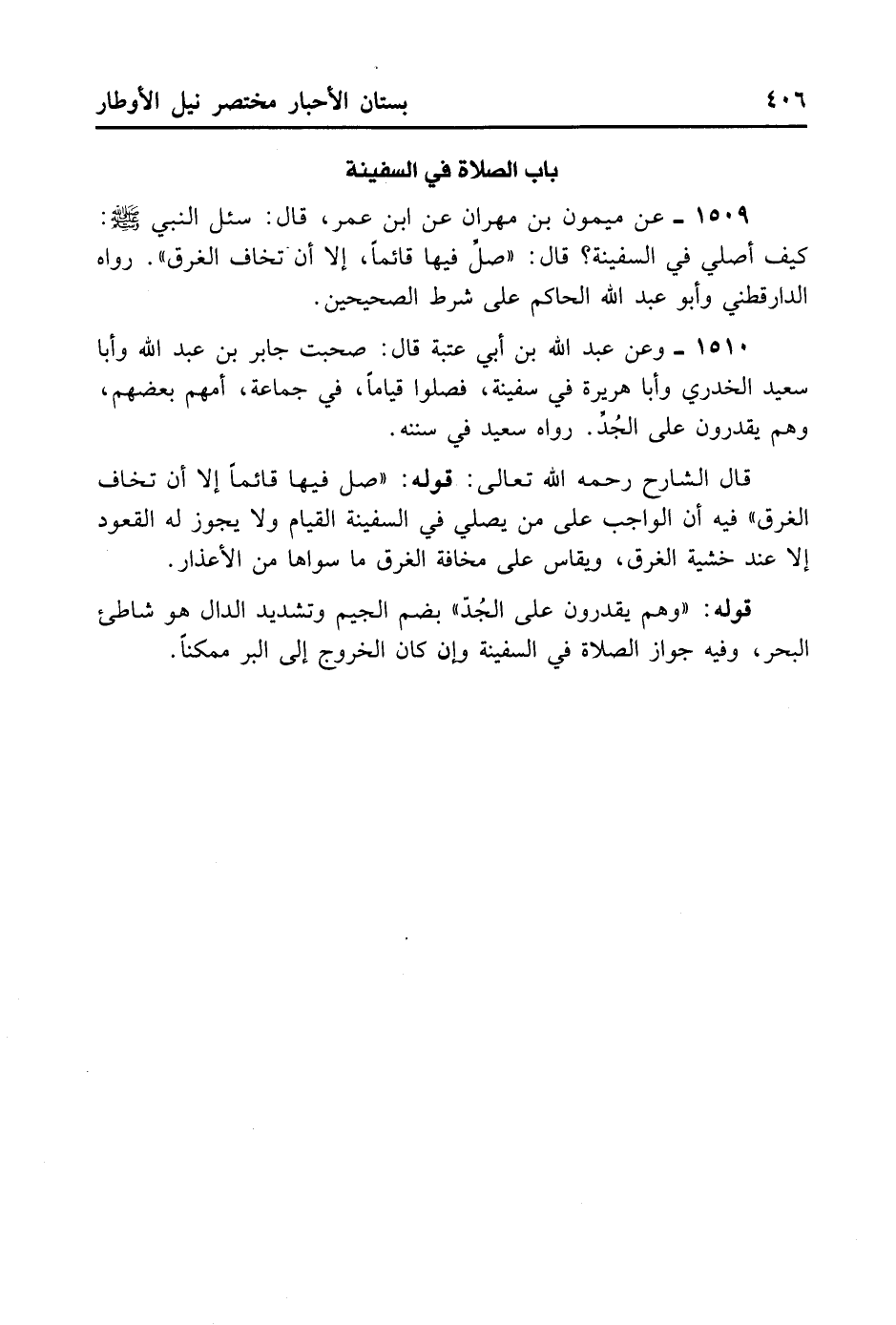 1509- عَنْ مَيْمُونِ بْنِ مِهْرَانَ عَنْ ابْنِ عُمَرَ قَالَ: سُئِلَ النَّبِيُّ - صلى الله عليه وسلم -: كَيْفَ أُصَلِّي فِي السَّفِينَةِ؟ قَالَ: «صَلِّ فِيهَا قَائِمًا إلَّا أَنْ تَخَافَ الْغَرَقَ» . وَرَوَاهُ الدَّارَقُطْنِيّ وَأَبُو عَبْدِ اللَّهِ الْحَاكِمُ عَلَى شَرْط الصَّحِيحَيْنِ.