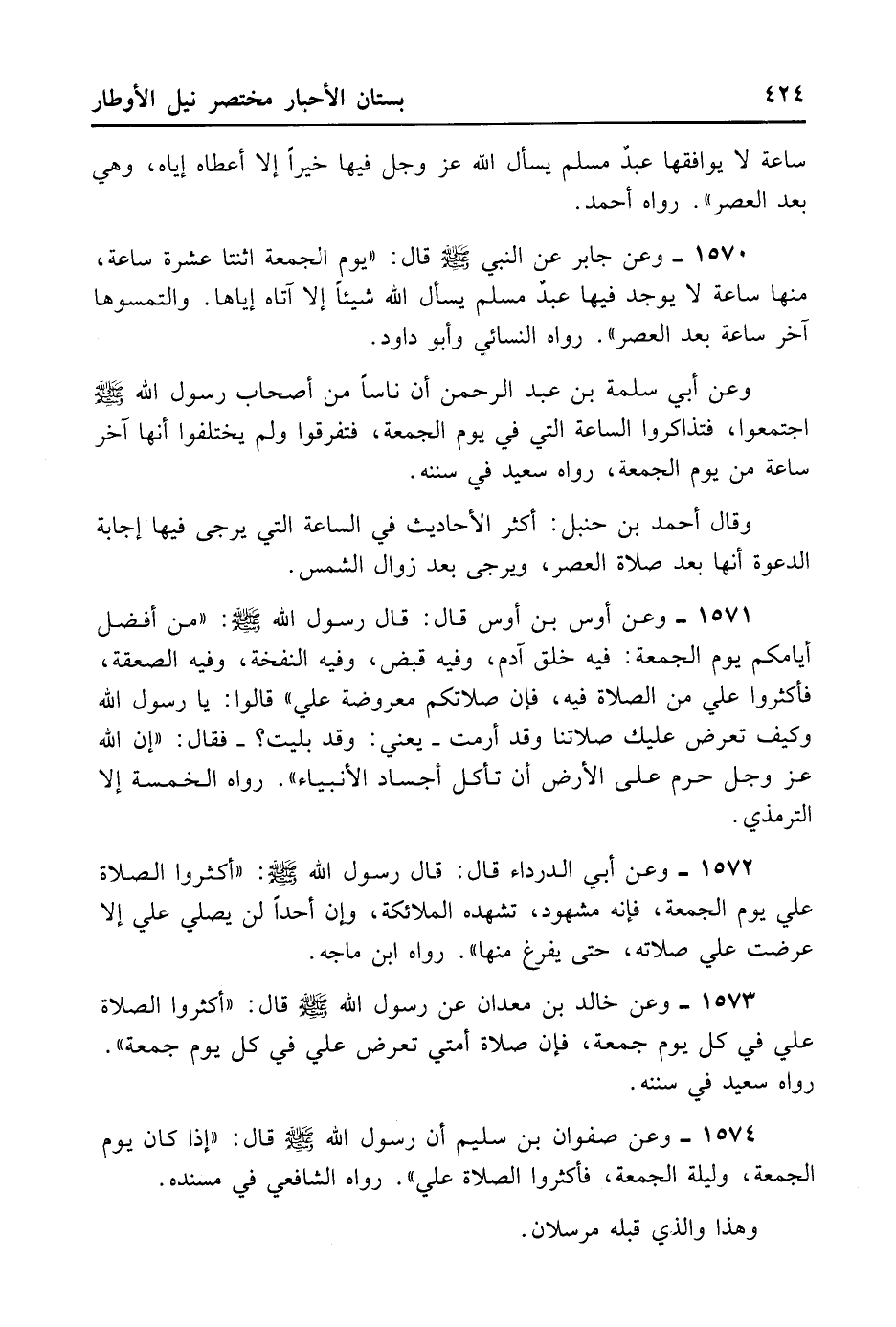 1574- وَعَنْ صَفْوَانَ بْنِ سُلَيْمٍ أَنَّ رَسُولَ اللَّهِ - صلى الله عليه وسلم - قَالَ: «إذَا كَانَ يَوْمُ الْجُمُعَةِ وَلَيْلَةُ الْجُمُعَةِ فَأَكْثِرُوا الصَّلَاةَ عَلَيَّ» . رَوَاهُ الشَّافِعِيُّ فِي مُسْنَده.
