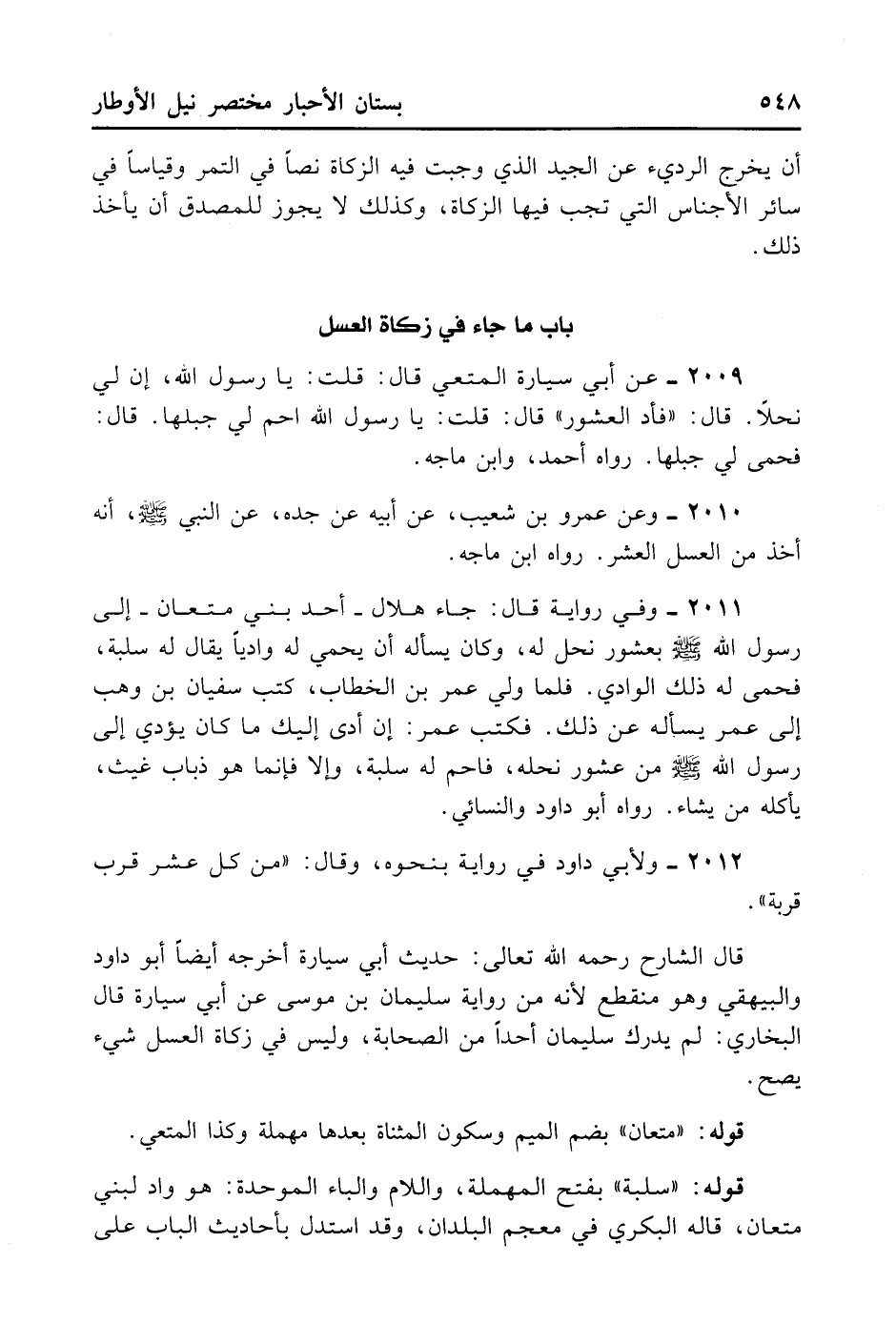 2009- عَنْ أَبِي سَيَّارَةَ الْمُتَعِيِّ قَالَ: قُلْت يَا رَسُولَ اللَّهِ إنَّ لِي نَخْلًا، قَالَ: «فَأَدِّ الْعُشُورَ» . قَالَ: قُلْت: يَا رَسُولَ اللَّهِ احْمِ لِي جَبَلَهَا، قَالَ: فَحَمَى لِي جَبَلَهَا. رَوَاهُ أَحْمَدُ وَابْنُ مَاجَهْ.