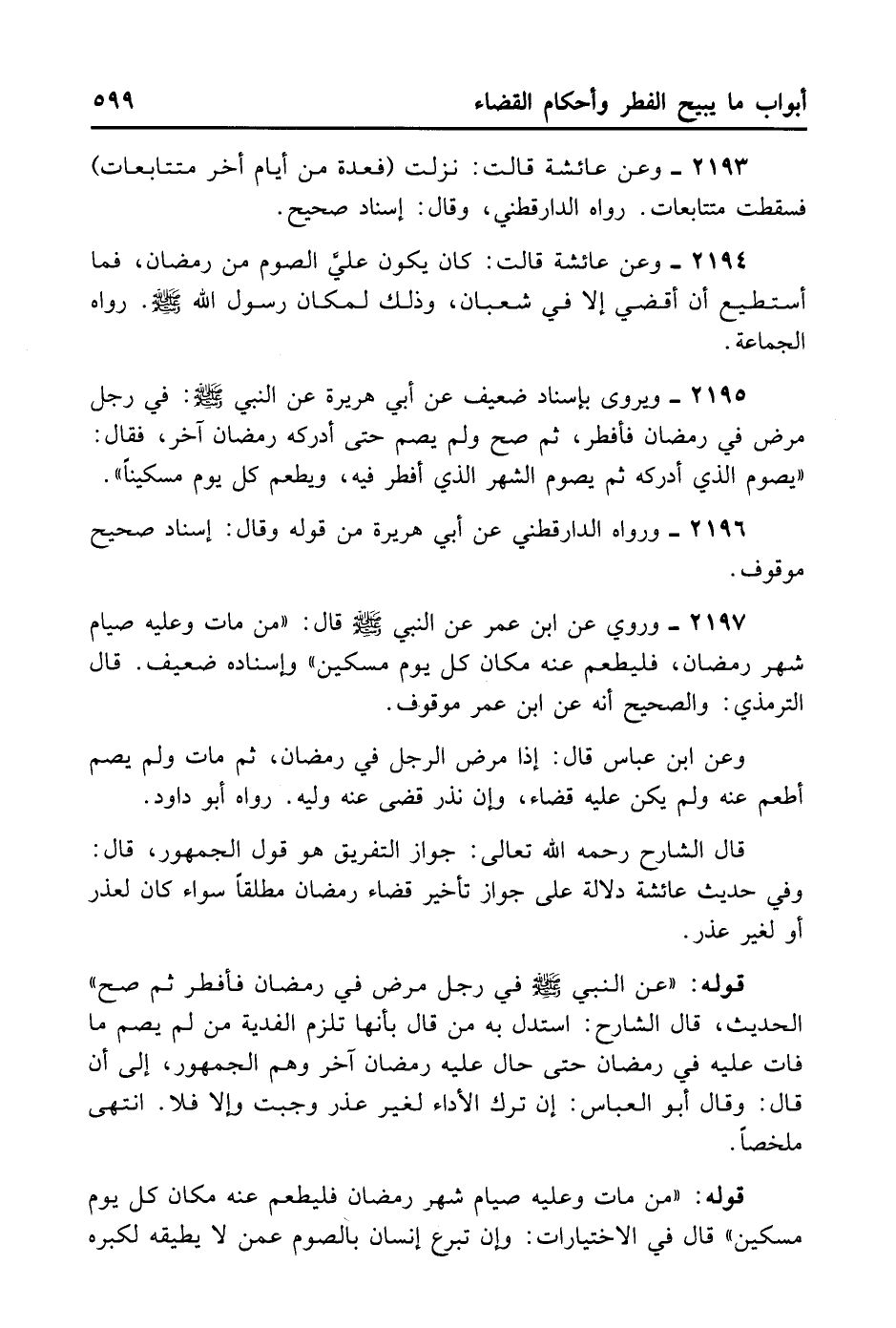 2193- وَعَنْ عَائِشَةَ قَالَتْ: نَزَلَتْ {فَعِدَّةٌ مِنْ أَيَّامٍ أُخَرَ} . مُتَتَابِعَاتٍ، فَسَقَطَتْ مُتَتَابِعَاتٍ. رَوَاهُ الدَّارَقُطْنِيّ وَقَالَ: إسْنَادٌ صَحِيحٌ.