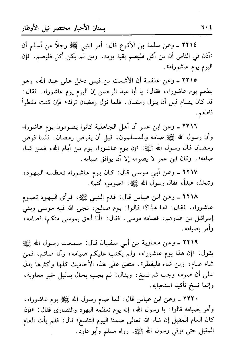 2214- وَعَنْ سَلَمَةَ بْنِ الْأَكْوَعِ قَالَ: أَمَرَ النَّبِيُّ - صلى الله عليه وسلم - رَجُلًا مِنْ أَسْلَمَ أَنْ أَذِّنْ فِي النَّاسِ أَنَّ مَنْ أَكَلَ فَلْيَصُمْ بَقِيَّةَ يَوْمِهِ، وَمَنْ لَمْ يَكُنْ أَكَلَ فَلْيَصُمْ، فَإِنَّ الْيَوْمَ يَوْمُ عَاشُورَاءَ.