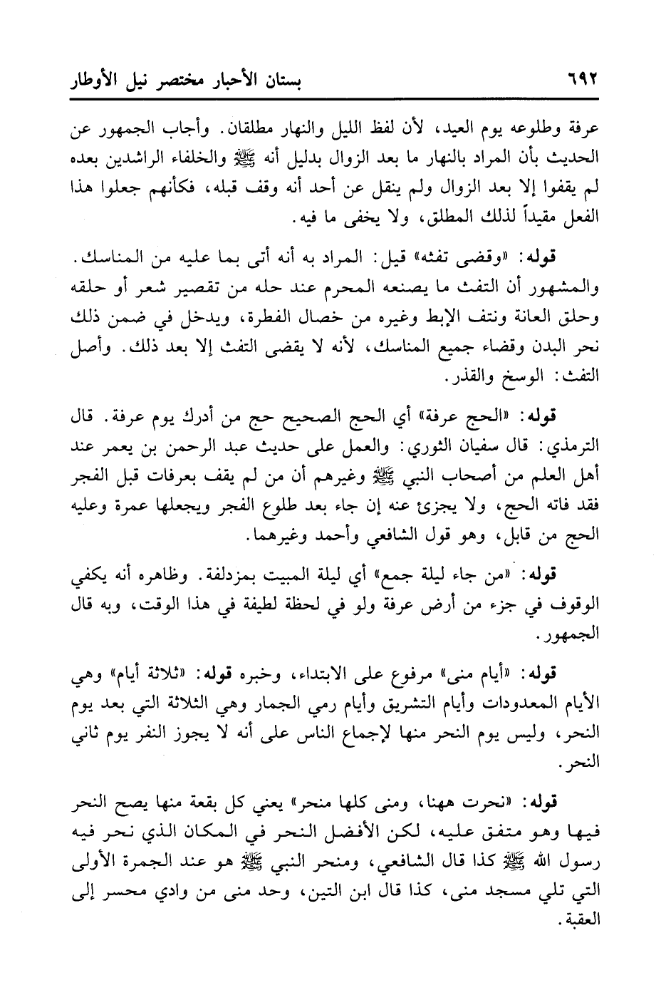 قَوْلُهُ: «الْحَجُّ عَرَفَةَ» أَي الْحَجُّ الصَّحِيحُ حِجُّ مَنْ أَدْرَكَ يَوْمَ عَرَفَةَ. قَالَ التِّرْمِذِيُّ: قَالَ سُفْيَانُ الثَّوْرِي: وَالْعَمَلُ عَلَى حَدِيثِ عَبْدِ الرَّحْمَن بن يعمر عِنْدَ أَهْلِ الْعِلْمِ مِنْ أَصْحَابِ النَّبِيِّ - صلى الله عليه وسلم - وَغَيْرِهِمْ أَنَّ مَنْ لَمْ يَقَفْ بِعَرَفَاتٍ قَبْلَ الْفَجْرِ فَقَدْ فَاتَهُ الْحَجُّ وَلا يُجْزِئْ عَنْهُ إِنْ جَاءَ بَعْدُ طُلُوعِ الْفَجْرِ وَيَجْعَلُهَا عُمْرَةً وَعَلَيْهِ الْحَجُّ مِنْ قَابِل وَهُوَ قَوْلُ الشَّافِعِي وَأَحْمَدْ وَغَيْرُهُمَا.