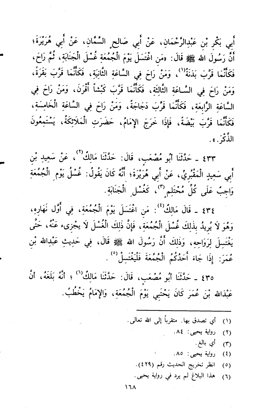 ٤٣٣ - حَدَّثَنَا أَبُو مُصْعَبٍ، قَالَ: حَدَّثَنَا مَالِكٌ، عَنْ سَعِيدِ بْنِ أَبِي سَعِيدٍ الْمَقْبُرِيِّ، عَنْ أَبِي هُرَيْرَةَ , أَنَّهُ كَانَ يَقُولُ: غُسْلُ يَوْمِ الْجُمُعَةِ وَاجِبٌ عَلَى كُلِّ مُحْتَلِمٍ , كَغُسْلِ الْجَنَابَةِ.