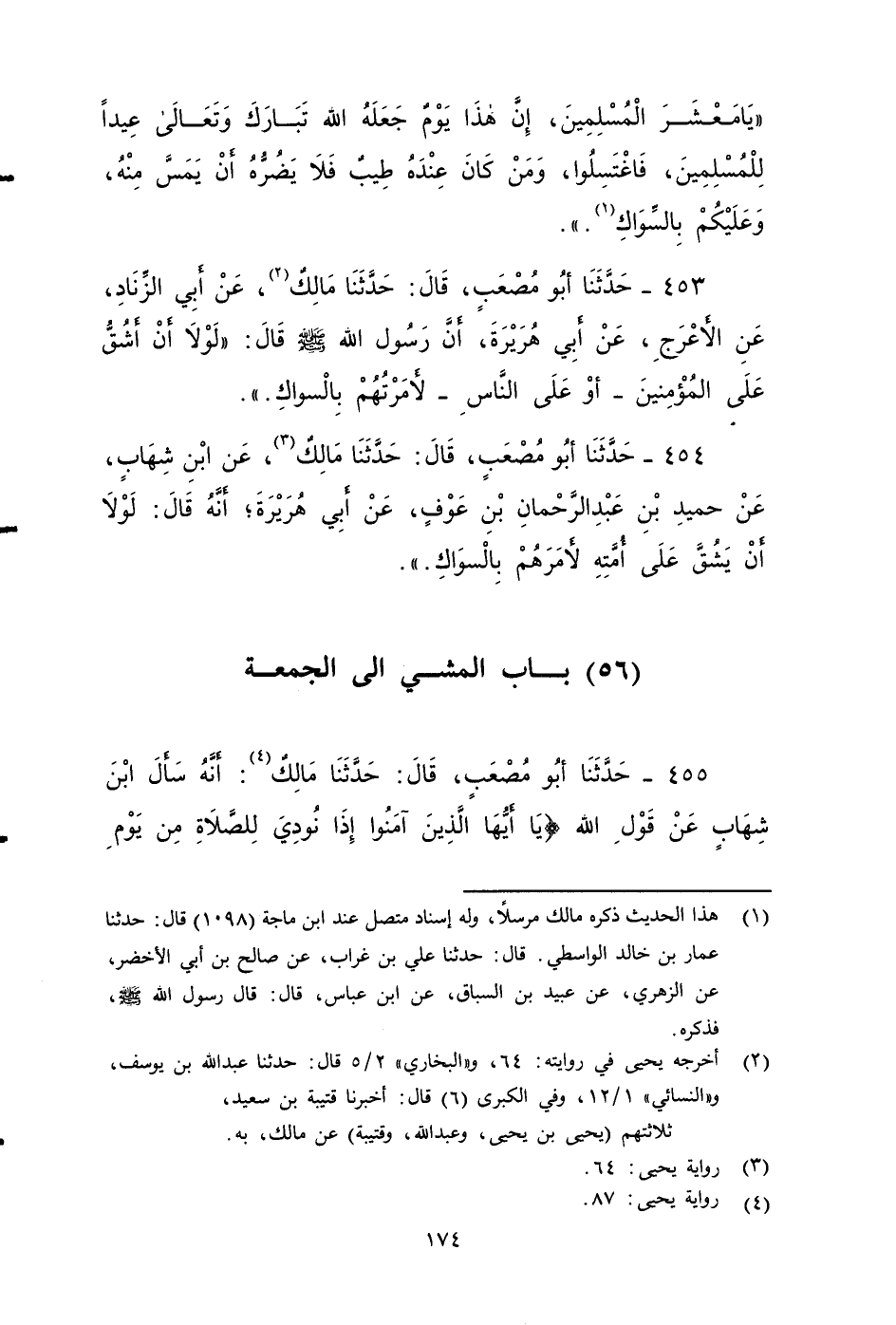 ٤٥٤ - حَدَّثَنَا أَبُو مُصْعَبٍ، قَالَ: حَدَّثَنَا مَالِكٌ، عَنِ ابْنِ شِهَابٍ، عَنْ حُمَيْدِ بْنِ عَبْدِ الرَّحْمَنِ بْنِ عَوْفٍ، عَنْ أَبِي هُرَيْرَةَ، أَنَّهُ قَالَ: لَوْلَا أَنْ يَشُقَّ عَلَى أُمَّتِهِ: لَأَمَرَهُمْ بِالسِّوَاكِ.