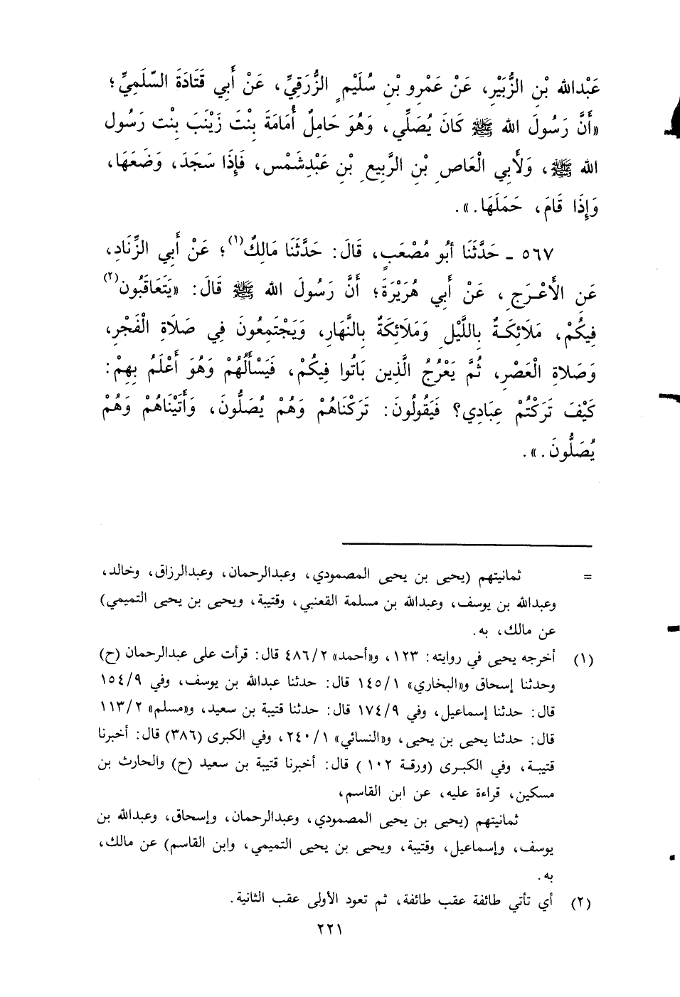 ٥٦٧ - حَدَّثَنَا أَبُو مُصْعَبٍ، قَالَ: حَدَّثَنَا مَالِكٌ، عَنْ أَبِي الزِّنَادِ، عَنِ الأَعْرَجِ، عَنْ أَبِي هُرَيْرَةَ، أَنَّ رَسُولَ اللَّهِ صَلى الله عَلَيه وَسَلم، قَالَ: يَتَعَاقَبُونَ فِيكُمْ مَلَائِكَةٌ بِاللَّيْلِ، وَمَلَائِكَةٌ بِالنَّهَارِ، وَيَجْتَمِعُونَ فِي صَلَاةِ الْفَجْرِ وصَلَاةِ الْعَصْرِ، ثُمَّ يَعْرُجُ الَّذِينَ بَاتُوا فِيكُمْ، فَيَسْأَلُهُمْ وَهُوَ أَعْلَمُ بِهِمْ: كَيْفَ تَرَكْتُمْ عِبَادِي؟ فَيَقُولُونَ: تَرَكْنَاهُمْ وَهُمْ يُصَلُّونَ، وَأَتَيْنَاهُمْ وَهُمْ يُصَلُّونَ.