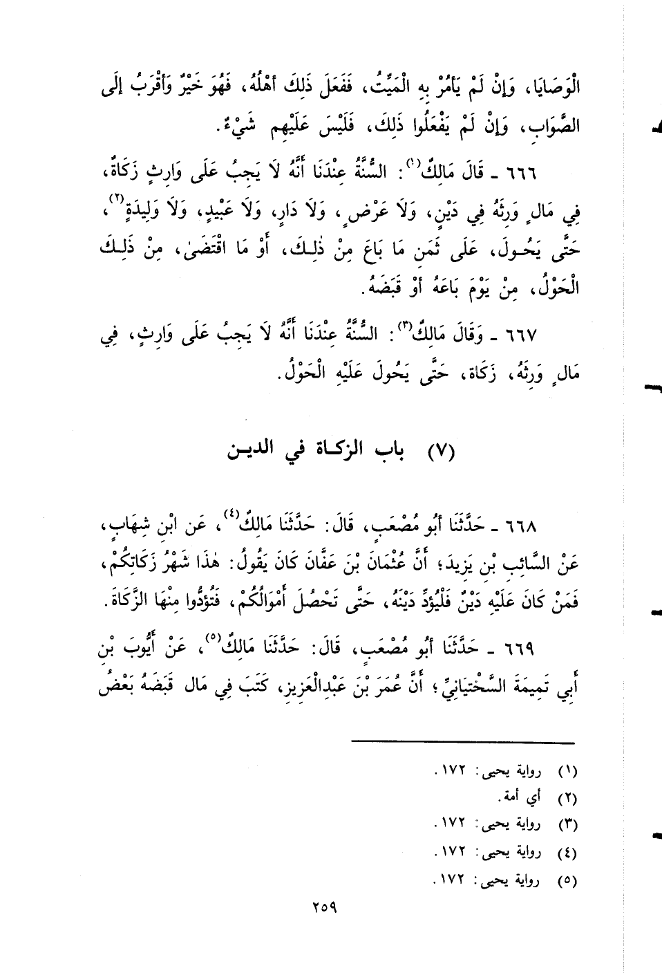 ٦٦٧ - وقَالَ مَالِكٌ: السُّنَّةُ عِنْدَنَا , أَنَّهُ لَا يَجِبُ عَلَى وَارِثٍ فِي مَالٍ وَرِثَهُ، زَّكَاةُ، حَتَّى يَحُولَ عَلَيْهِ الْحَوْلُ.