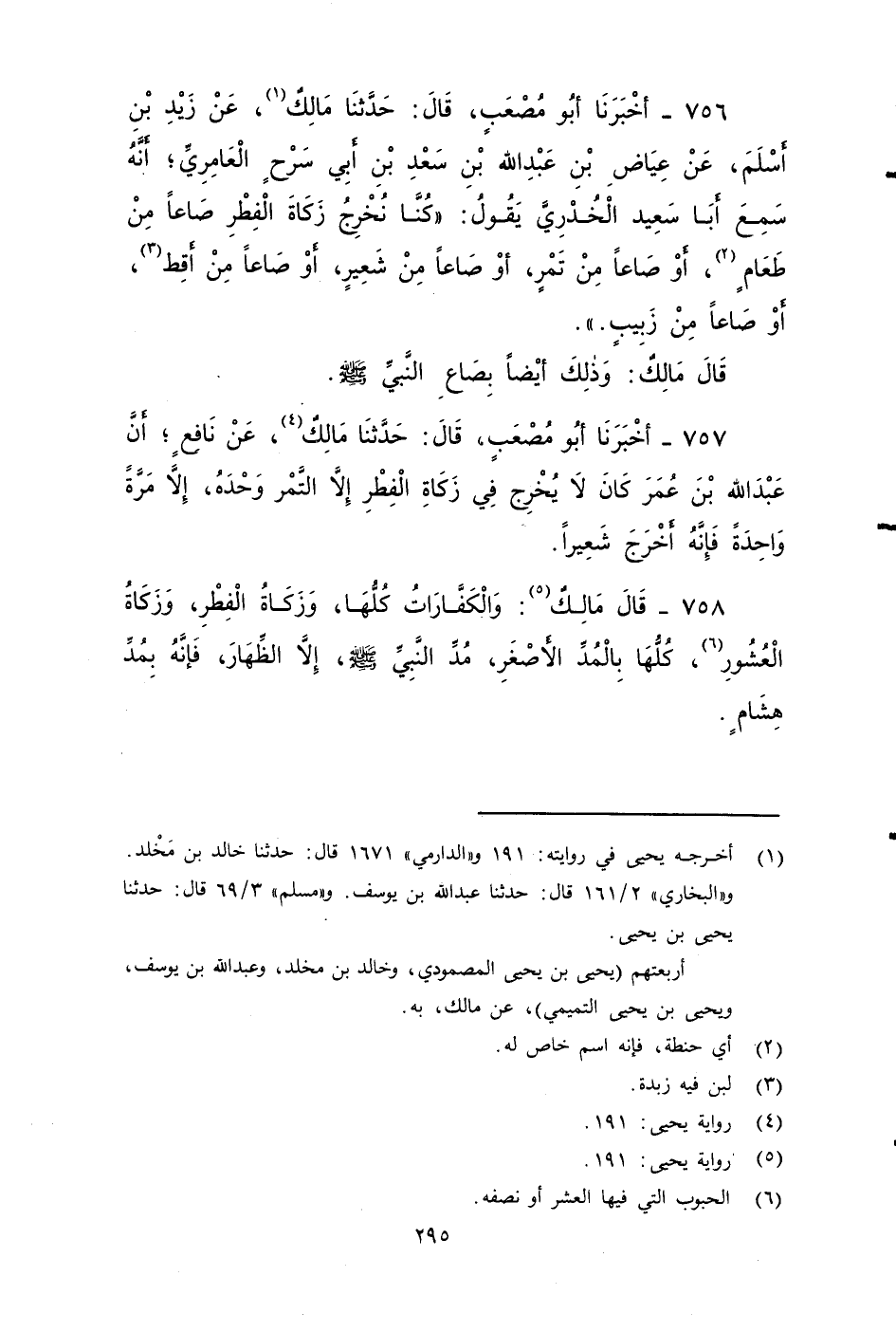 ٧٥٦ - أخبرنا أَبُو مُصْعَبٍ، قَالَ: حَدَّثَنَا مَالِكٌ، عَنْ زَيْدِ بْنِ أَسْلَمَ، عَنْ عِيَاضِ بْنِ عَبْدِ اللهِ بْنِ سَعْدِ بْنِ أَبِي سَرْحٍ الْعَامِرِيِّ، أَنَّهُ سَمِعَ أَبَا سَعِيدٍ الْخُدْرِيَّ يَقُولُ: كُنَّا نُخْرِجُ زَكَاةَ الْفِطْرِ صَاعًا مِنْ طَعَامٍ، أَوْ صَاعًا مِنْ تَمْرٍ أَوْ صَاعًا مِنْ شَعِيرٍ، أَوْ صَاعًا مِنْ أَقِطٍ، أَوْ صَاعًا مِنْ زَبِيبٍ.