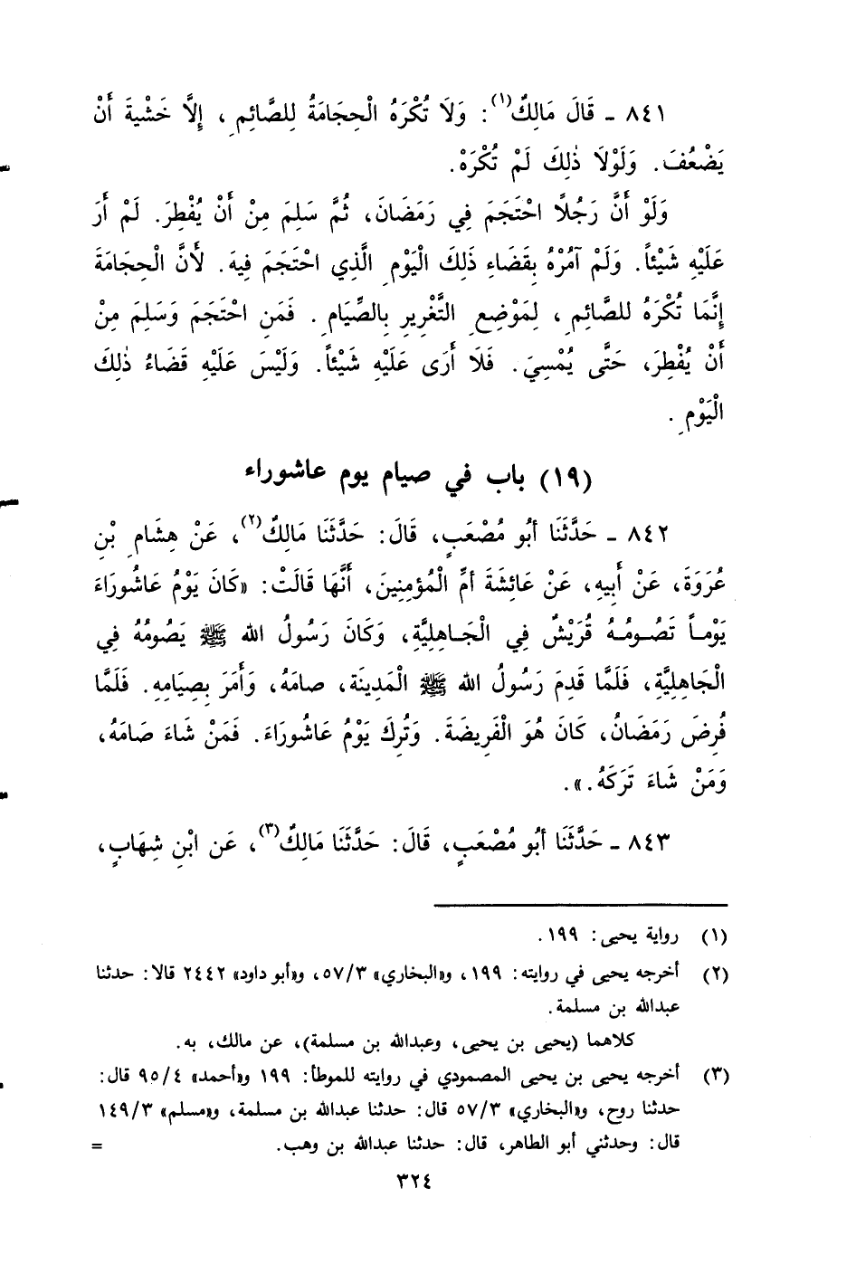 ٨٤٢ - حَدَّثَنَا أَبُو مُصْعَبٍ، قَالَ: حَدَّثَنَا مَالِكٌ، عَنْ هِشَامِ بْنِ عُرْوَةَ، عَنْ أَبِيهِ، عَنْ عَائِشَةَ أم المؤمنين أَنَّهَا قَالَتْ: كَانَ يَوْمُ عَاشُورَاءَ يَوْمًا تَصُومُهُ قُرَيْشٌ فِي الْجَاهِلِيَّةِ، وَكَانَ رَسُولُ اللَّهِ صَلى الله عَلَيه وَسَلم: يَصُومُهُ فِي الْجَاهِلِيَّةِ، فَلَمَّا قَدِمَ رَسُولُ اللَّهِ صَلى الله عَلَيه وَسَلم الْمَدِينَةَ صَامَهُ، وَأَمَرَ بِصِيَامِهِ، فَلَمَّا فُرِضَ رَمَضَانُ: كَانَ هُوَ الْفَرِيضَةَ، وَتُرِكَ يَوْمُ عَاشُورَاءَ، فَمَنْ شَاءَ صَامَهُ، وَمَنْ شَاءَ تَرَكَهُ.