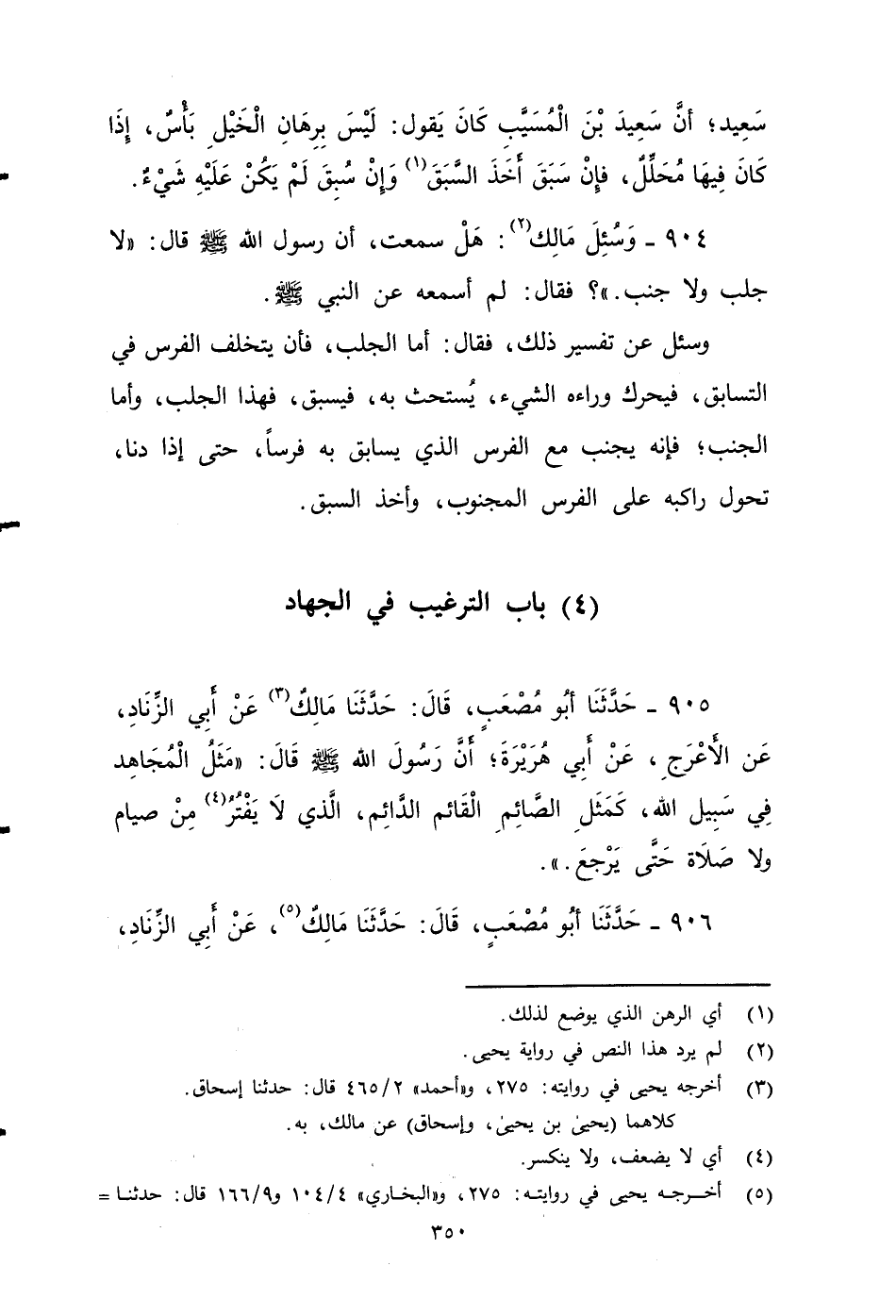 ٩٠٤ - وَسُئِلَ مَالِكٌ: هَلْ سَمِعْتَ أَنَّ رَسُولَ اللَّهِ صَلَّى اللَّهُ عَلَيْهِ وَسَلَّمَ قَالَ: لَا جَلَبَ وَلَا جَنَبَ؟ فَقَالَ: لَمْ أَسْمَعْهُ عَنِ النَّبِيِّ صَلَّى اللَّهُ عَلَيْهِ وَسَلَّمََ.