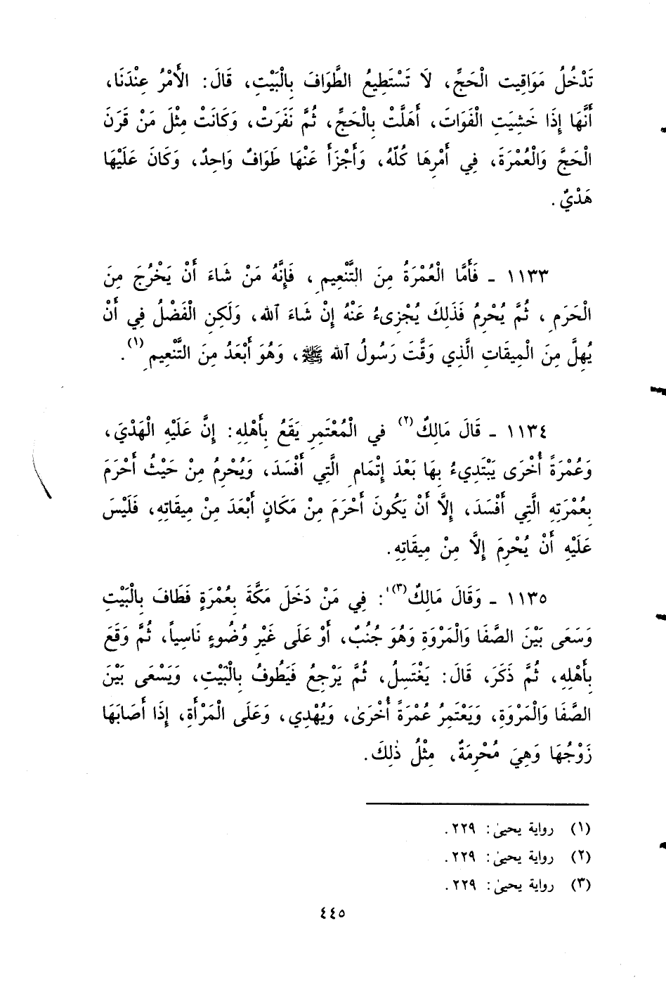 ١١٣٣ - فَأَمَّا الْعُمْرَةُ مِنَ التَّنْعِيمِ، فَإِنَّهُ مَنْ شَاءَ أَنْ يَخْرُجَ مِنَ الْحَرَمِ ثُمَّ يُحْرِمَ، فَذَلِكَ يجْزِئٌ عَنْهُ إِنْ شَاءَ اللَّهُ، وَلَكِنِ الْفَضْلُ في أَنْ يُهِلَّ مِنَ الْمِيقَاتِ الَّذِي وَقَّتَ رَسُولُ اللهِ صَلَّى اللَّهُ عَلَيْهِ وَسَلَّمَ، وهُوَ أَبْعَدُ مِنَ التَّنْعِيمِ.