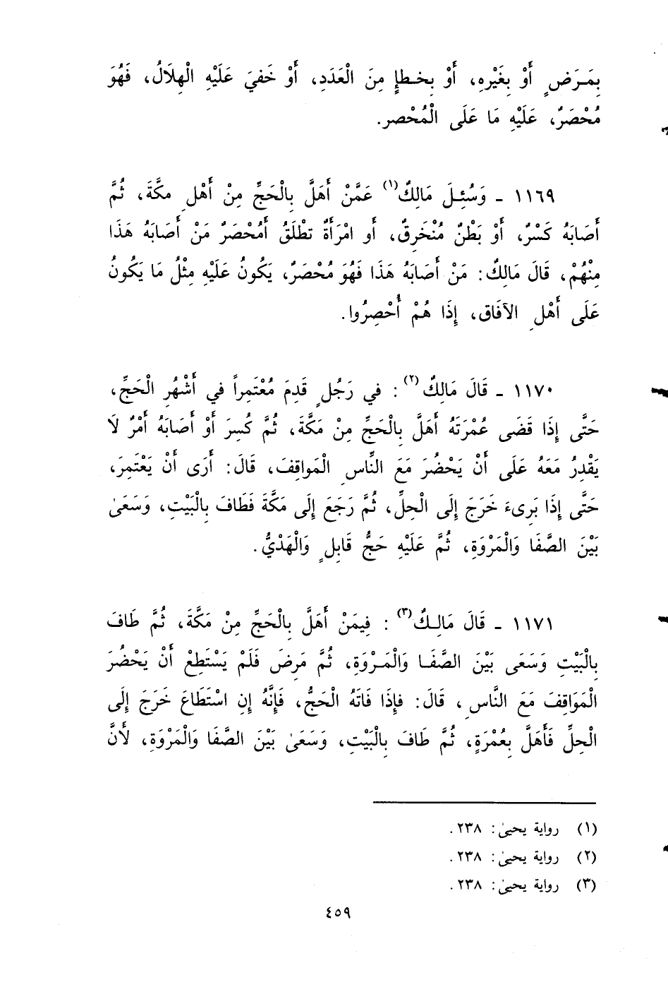 ١١٦٨ - قَالَ مَالِكٌ: وَكُلُّ مَنْ حُبِسَ عَنِ الْحَجِّ بَعْدَ مَا يُحْرِمُ، بِمَرَضٍ , أَوْ بِغَيْرِهِ، أَوْ بِخَطَإٍ مِنَ الْعَدَدِ، أَوْ خَفِيَ عَلَيْهِ الْهِلَالُ، فَهُوَ مُحْصَرٌ، عَلَيْهِ مَا عَلَى الْمُحْصَرِ ...