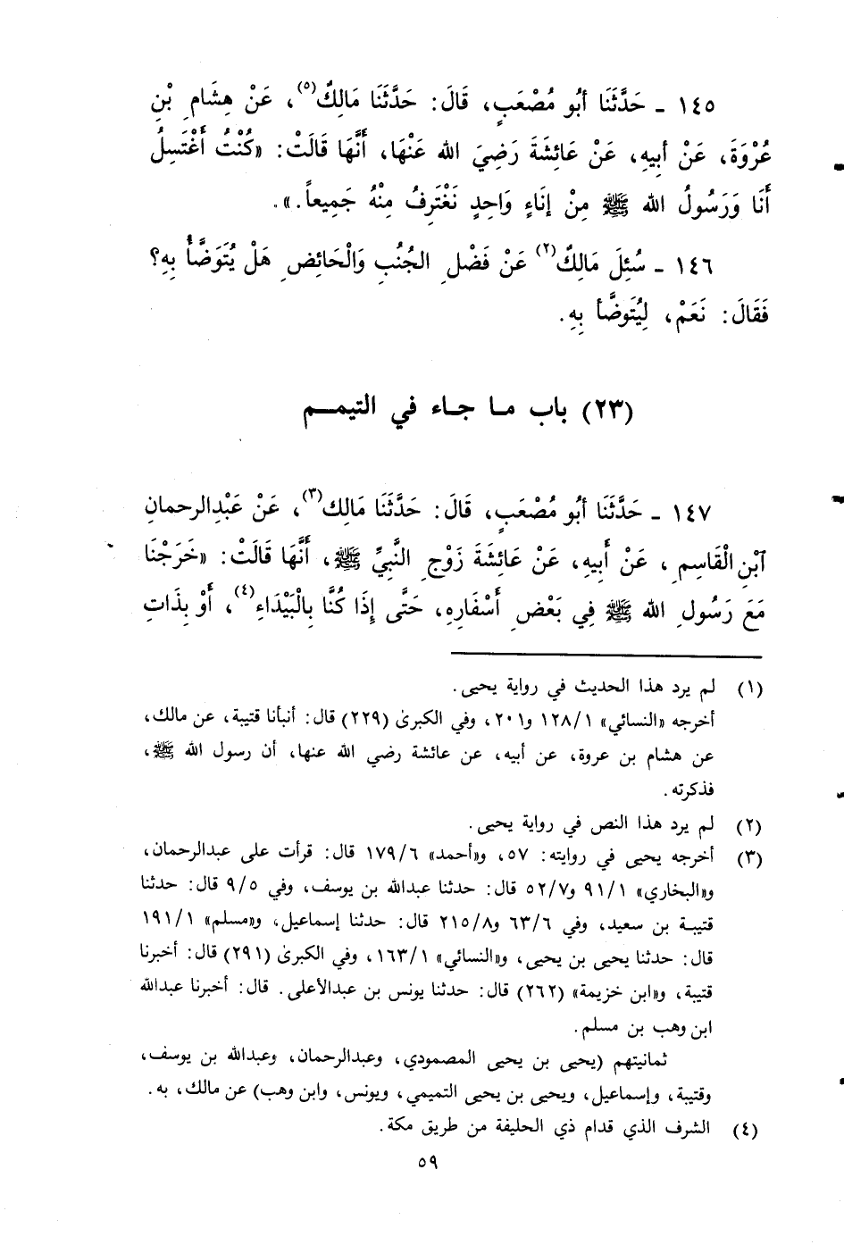 ١٤٥ - حَدَّثَنَا أَبُو مصعب، قَالَ: حَدَّثَنَا مَالِكٌ، عَنْ هشام بْن عروة، عَنْ أَبِيهِ، عَنْ عائشة رَضِيَ اللَّهُ عَنْهَا، أنها قالت: كنت أغتسل أَنَا ورسول الله صَلى الله عَلَيه وَسَلم من إناءٍ واحدٍ، نغترف منه جميعًا.