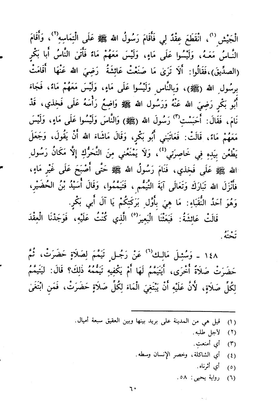 ١٤٨ - وَسُئِلَ مَالِكٌ عَنْ رَجُلٍ تَيَمَّمَ لِصَلَاةٍ حَضَرَتْ، ثُمَّ حَضَرَتْ صَلَاةٌ أُخْرَى، أَيَتَيَمَّمُ لَهَا أَمْ يَكْفِيهِ تَيَمُّمُهُ ذَلِكَ؟ فَقَالَ: ليَتَيَمَّمُ لِكُلِّ صَلَاةٍ، لأَنَّ عَلَيْهِ أَنْ يَبْتَغِيَ الْمَاءَ لِكُلِّ صَلَاةٍ حضرت، فَمَنِ ابْتَغَى الْمَاءَ فَلَمْ يَجِدْهُ، فَإِنَّهُ يَتَيَمَّمُ.
