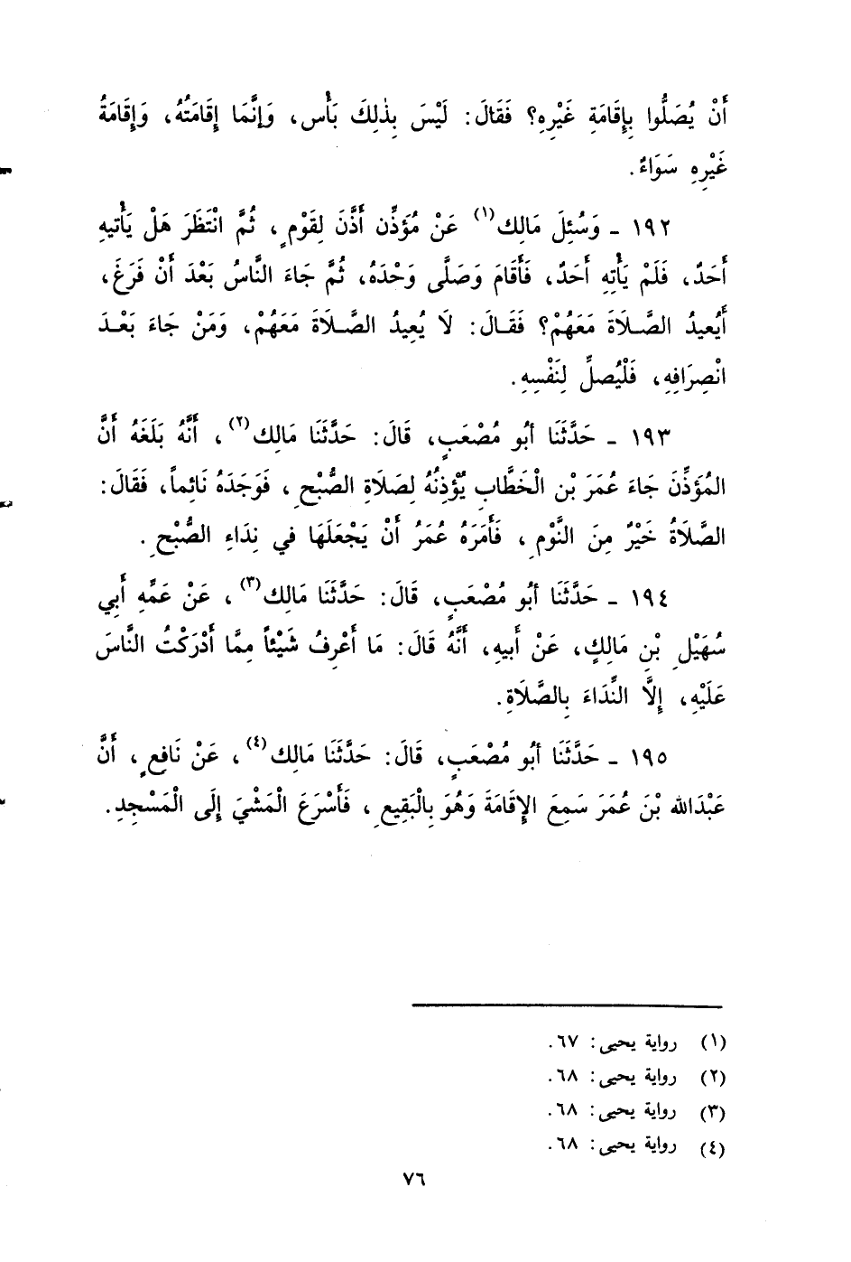 ١٩٥ - حَدَّثَنَا أَبُو مُصْعَبٍ، قَالَ: حَدَّثَنَا مَالِكٌ، عَنْ نَافِعٍ، أَنَّ عَبْدَ اللهِ بْنَ عُمَرَ سَمِعَ الإِقَامَةَ وَهُوَ بِالْبَقِيعِ , فَأَسْرَعَ الْمَشْيَ إِلَى الْمَسْجِدِ.