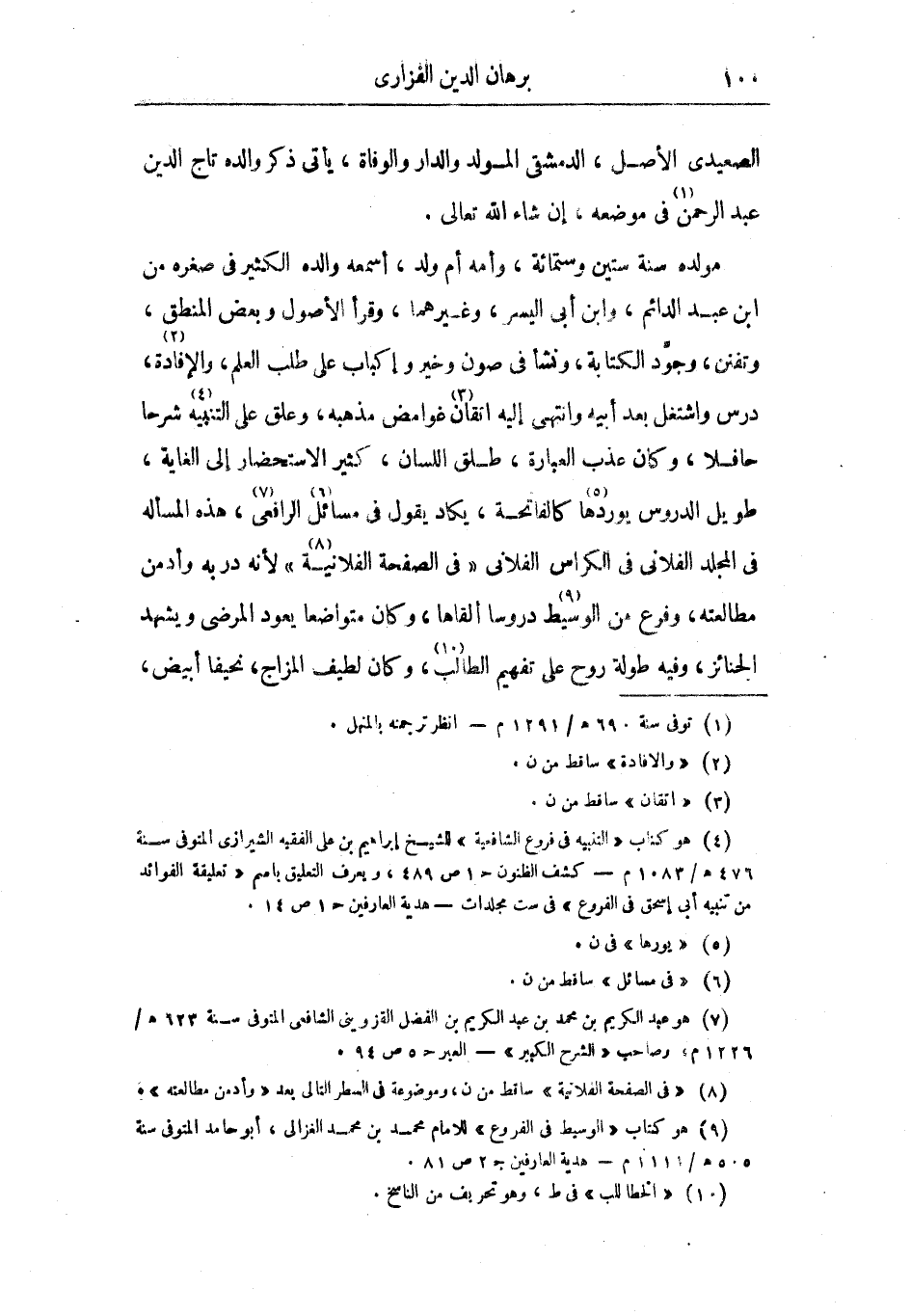 مولده سنة ستين وستمائة، وأمه أم ولد، أسمعه والده الكثير في صغره من بن عبد الدائم، وابن أبي اليسر، وغيرهما، وقرأ الأصول وبعض المنطق، وتفنن، وجود الكتابة، ونشأ في صون وخير وإكباب على طلب العلم، والإفادة، درس واشتغل بعد أبيه وانتهى إليه إتقان غوامض مذهبه، وعلق على التنبيه شرحا حافلا، وكان عذب العبارة، طلق اللسان، كثير الاستحضار إلى الغاية، طويل الدروس يوردها كالفاتحة، يكاد يقول في مسائل الرافعي، هذه المسألة في المجلد الفلاني في الكراس الفلاني في الصفحة الفلانية لأنه دربه وأدمن مطالعته، وفرع من الوسيط دروسا ألقاها، وكان متواضعا يعود المرضى ويشهد الجنائز، وفيه طولة روح على تفهيم الطالب، وكان لطيف المزاج، نحيفا أبيض،