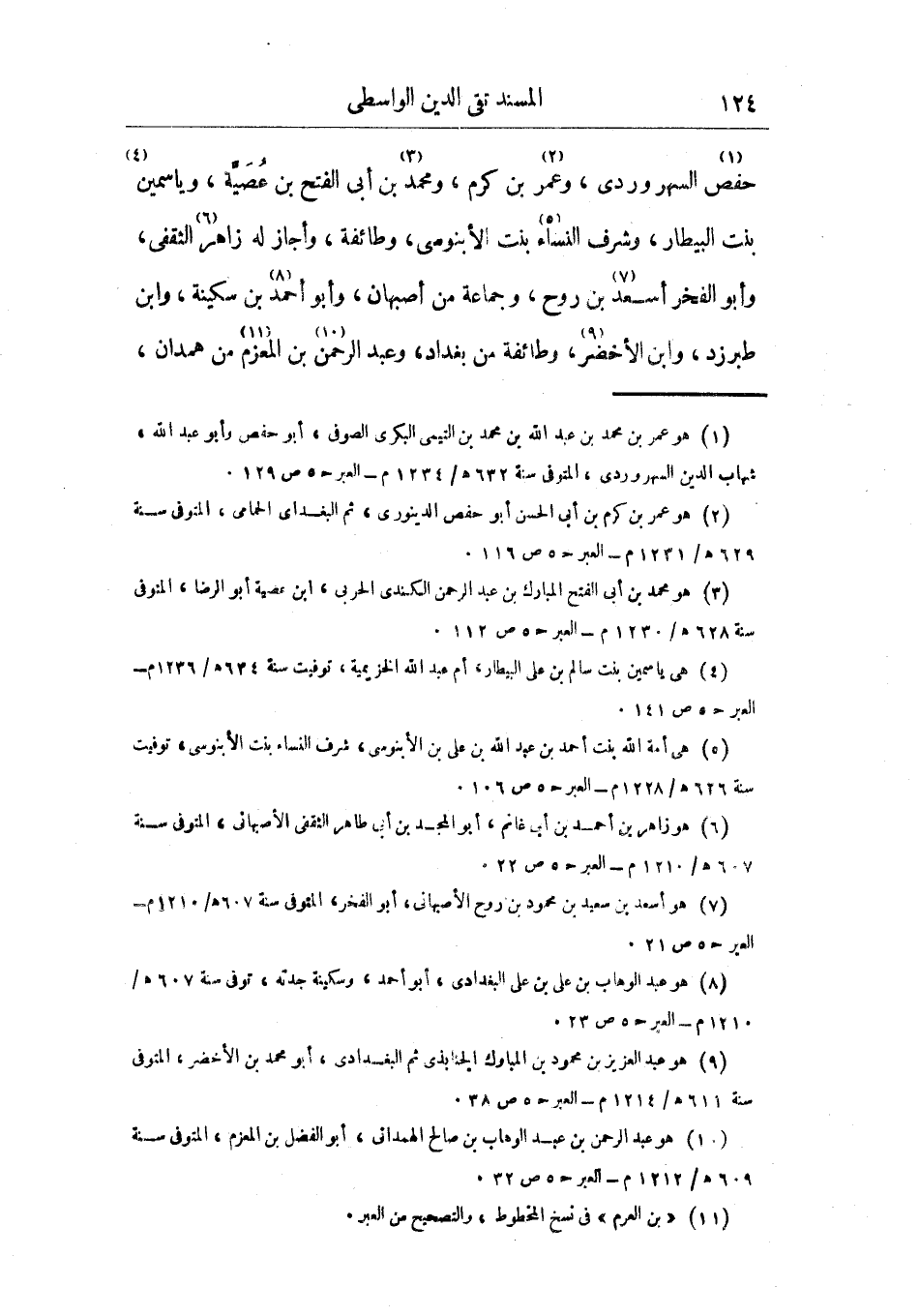 حفص السهروردي، وعمر بن كرم، ومحمد بن أبي الفتح بن عصيبة، وياسمين بنت البيطار، وشرف النساء بنت الأبنوسي، وطائفة، وأجاز له زاهر الثقغي، وأبو الفخر أسعد بن روح، وجماعة من أصبهان، وأبو أحمد بن سكينة، وابن طبرزد، وابن الأخضر، وطائفة من بغداد، وعبد الرحمن بن المعزم من همدان،