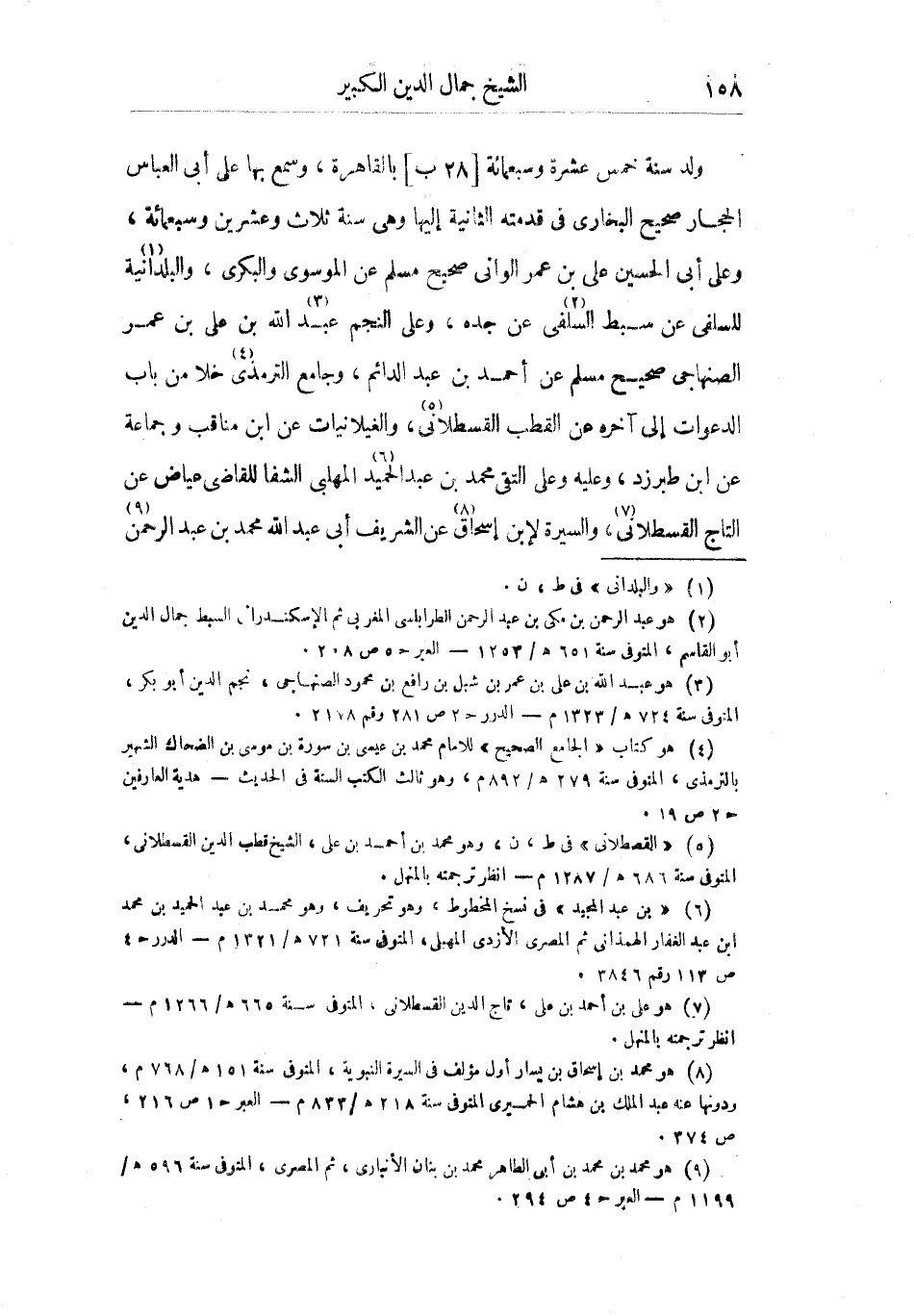 ولد سنة خمس عشرة وسبعمائة بالقاهرة، وسمع بها على أبي العباس الحجار صحيح البخاري في قدمته الثانية إليها وهي سنة ثلاث وعشرين وسبعمائة، وعلى أبي الحسين علي بن عمر الواني صحيح مسلم عن الموسوي والبكري، والبلدانية للسلفي عن سبط السلفي عن جده، وعلى النجم عبد الله بن علي بن عمر الصنهاجي صحيح مسلم عن أحمد بن عبد الدائم، وجامع الترمذي خلا من باب الدعوات إلى آخره عن القطب القسطلاني، والغيلانيات عن ابن مناقب وجماعة عن ابن طبرزد، وعليه وعلى التقي محمد بن عبد الحميد المهلبي الشفا للقاضي عياض عن التاج القسطلاني، والسيرة لأبن إسحاق عن الشريف أبي عبد الله محمد بن عبد الرحمن