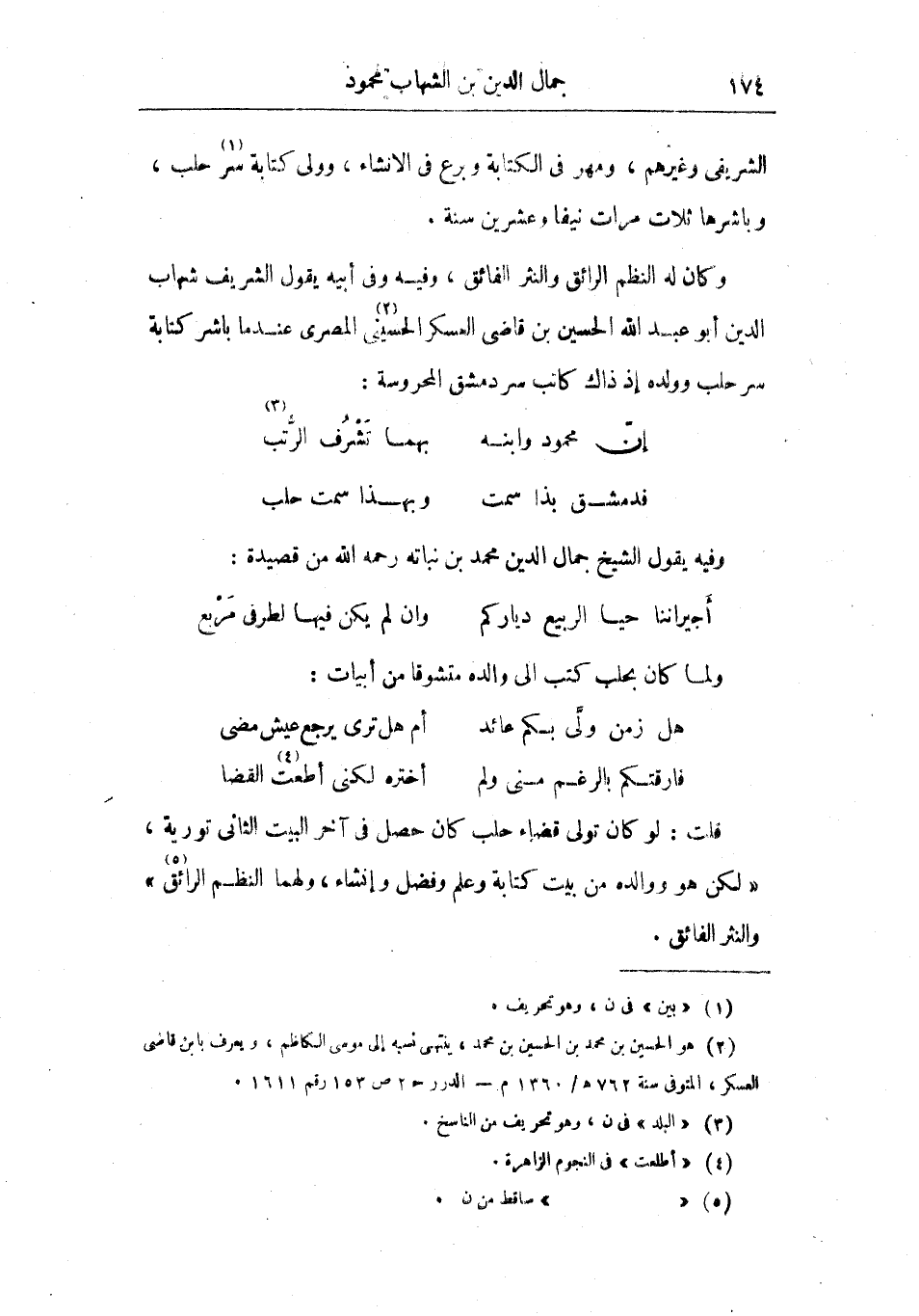 قلت: لو كان تولى قضاء حلب كان حصل في آخر البيت الثاني تورية، لكن هو ووالده من بيت كتابة وعلم وفضل وإنشاء، ولهما النظم الرائق والنثر الفائق.