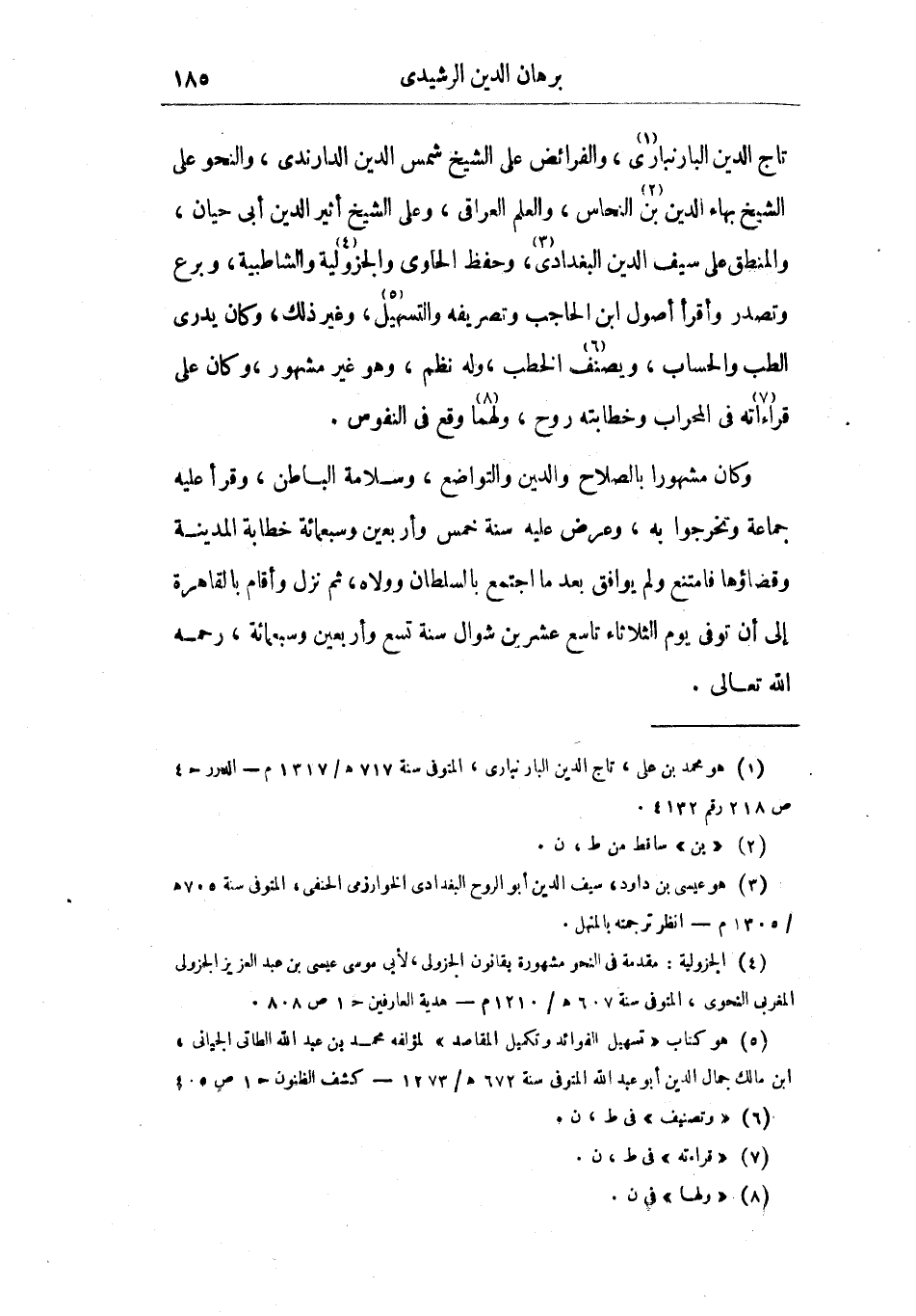 وكان مشهورا بالصلاح والدين والتواضع، وسلامة الباطن، وقرأ عليه جماعة وتخرجوا به، وعرض عليه سنة خمس وأربعين وسبعمائة خطابة المدينة وقضاؤها فامتنع ولم يوافق بعد ما اجتمع بالسلطان وولاه، ثم نزل وأقام بالقاهرة إلى أن توفي يوم الثلاثاء تاسع عشرين شوال سنة تسع وأربعين وسبعمائة، رحمه الله تعالى.