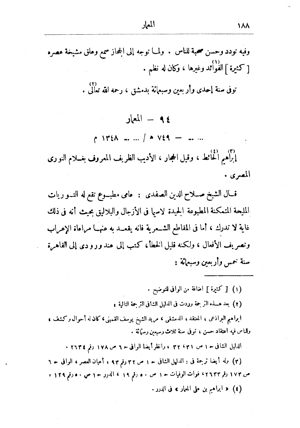 إبراهيم الحائط، وقيل الحجار، الأديب الظريف المعروف بغلام النوري المصري.
