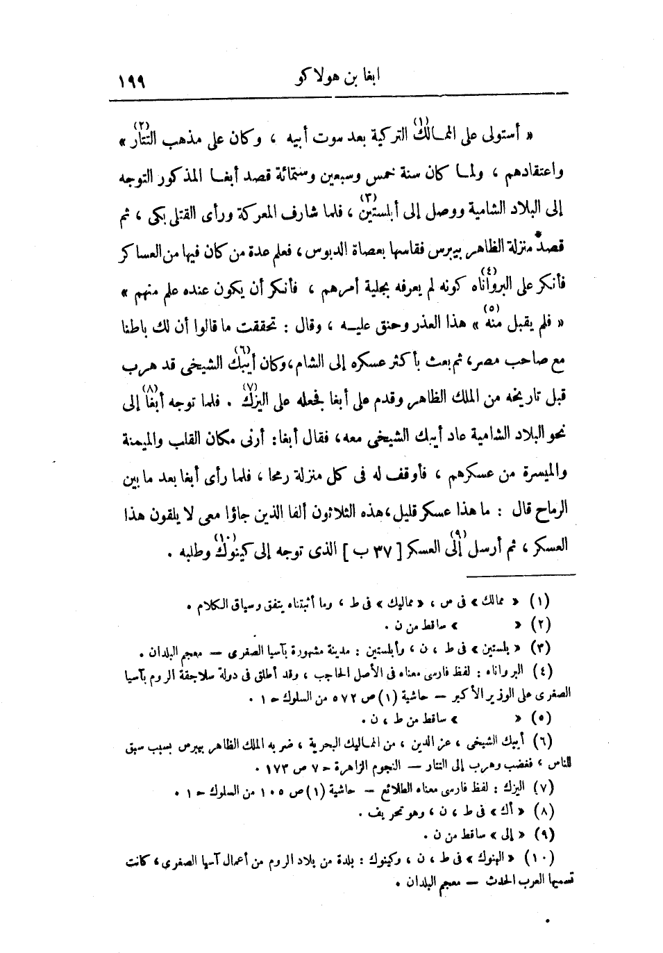 فلما توجه أبغا إلى نحو البلاد الشامية عاد أيبك الشيخي معه، فقال أبغا: أرني مكان القلب والميمنة والميسرة من عسكرهم، فأوقف له في كل منزلة رمحا، فلما رأى أبغا بعد ما بين الرماح قال: ما هذا عسكر قليل، هذه الثلاثون ألفا الذين جاؤا معي لا يلقون هذا العسكر، ثم أرسل إلى العسكر الذي توجه إلى كينوك وطلبه.
