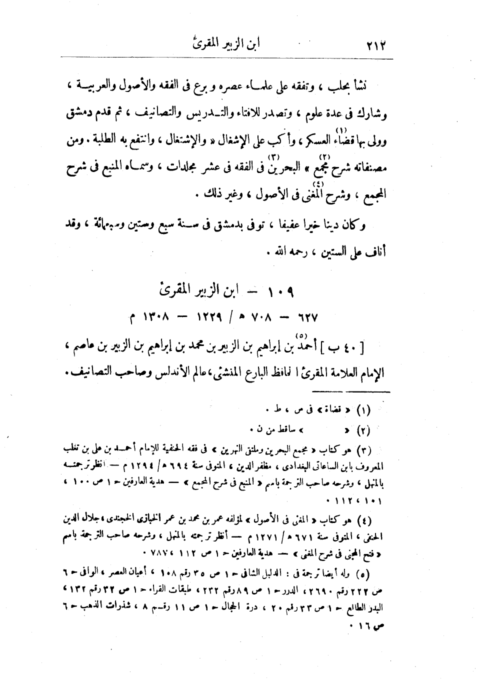 ابن الزبير المقرئ 726 - 807هـ، 1229 - 1308م