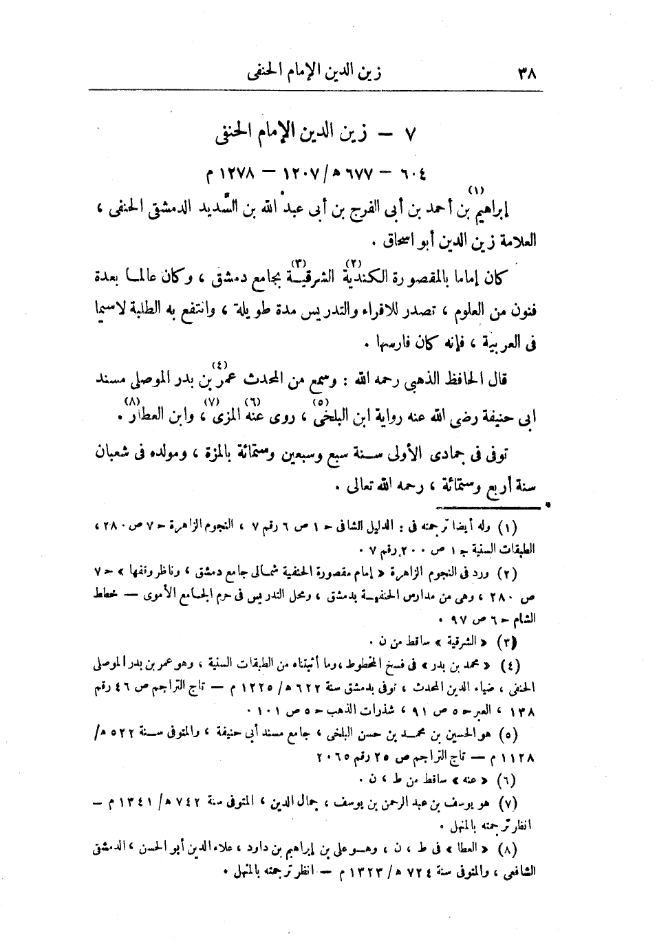 زين الدين الإمام الحنفي 604 - 677هـ، 1207 - 1278م