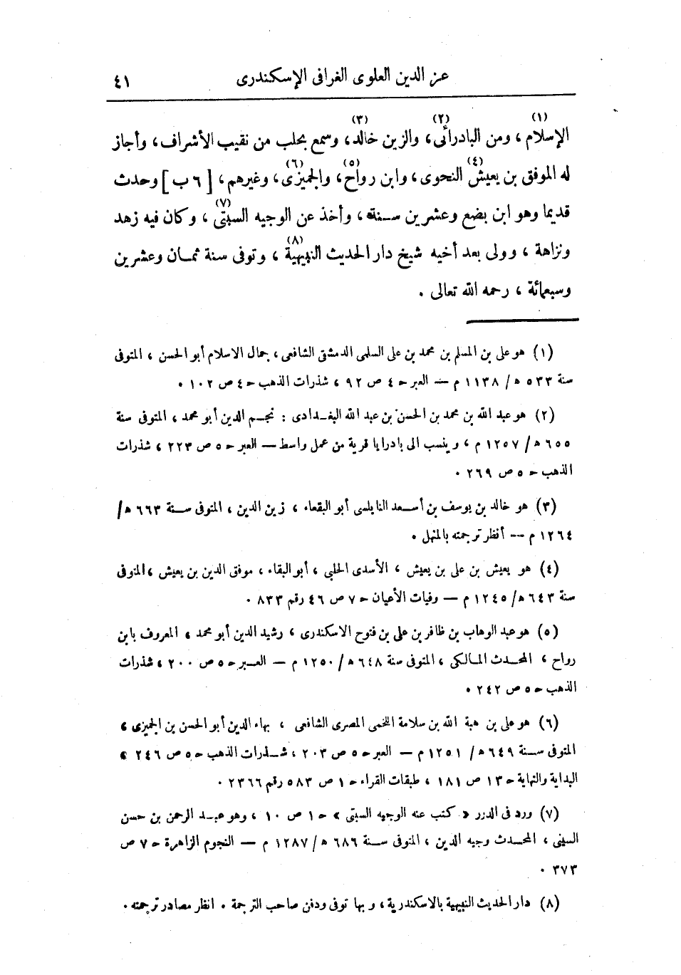 الإسلام، ومن البادرائي، والزين خالد، وسمع بحلب من نقيب الأشراف، وأجاز له الموفق بن يعيش النحوي، وابن رواح، والجميزي، وغيرهم، وحدث قديما وهو ابن بضع وعشرين سنة، وأخذ عن الوجيه السبتي، وكان فيه زهد ونزاهة، وولى بعد أخيه شيخ دار الحديث النبيهة، وتوفي سنة ثمان وعشرين وسبعمائة، رحمه الله تعالى.