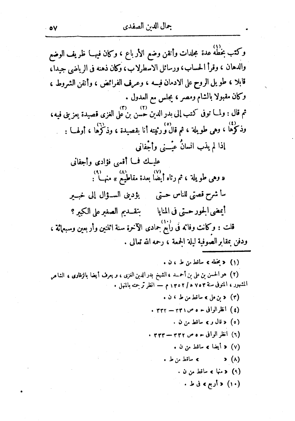 ثم قال: ولما توفي كتب إلى بدر الدين حسن بن علي الغزي قصيدة يعزيني فيه، وذكرها، وهي طويلة، ثم قال ورثيته أنا بقصيدة، وذكرها، أولها:
