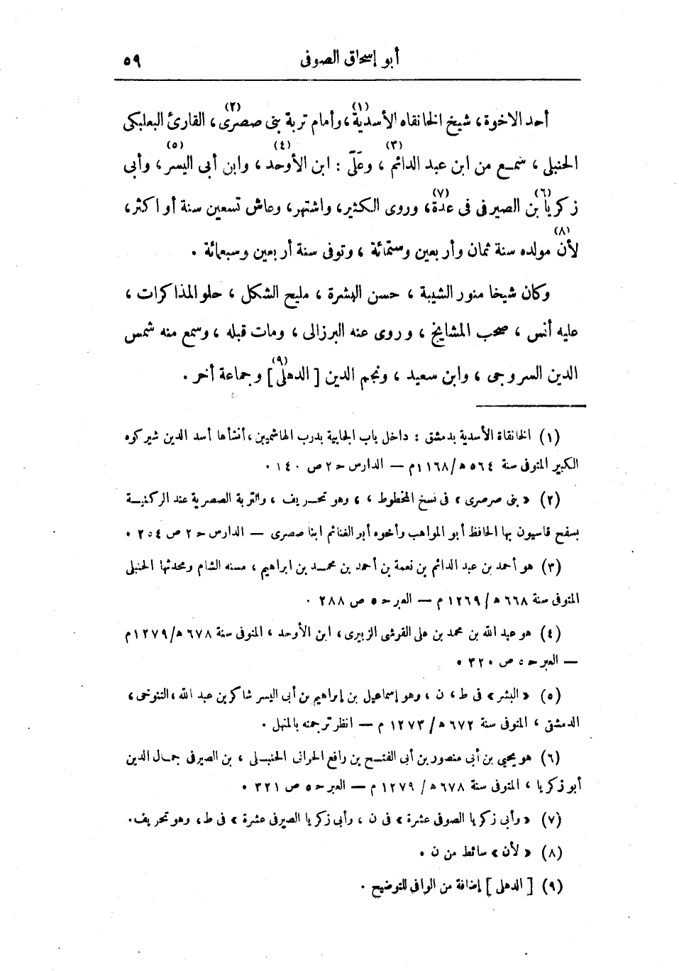 أحد الأخوة، شيخ الخانقاه الأسدية، وأمام تربة بني صصرى، القارئ البعلبكي الحنبلي، سمع من أبن عبد الدائم، وعلى: أبن الأوحد، وأبن أبي اليسر، أبي زكريا بن الصيرفي في عدة، وروى الكثير، وأشتهر، وعاش تسعين سنة أو أكثر، لأن مولده سنة ثمان وأربعين وستمائة، وتوفى سنة أربعين وسبعمائة.