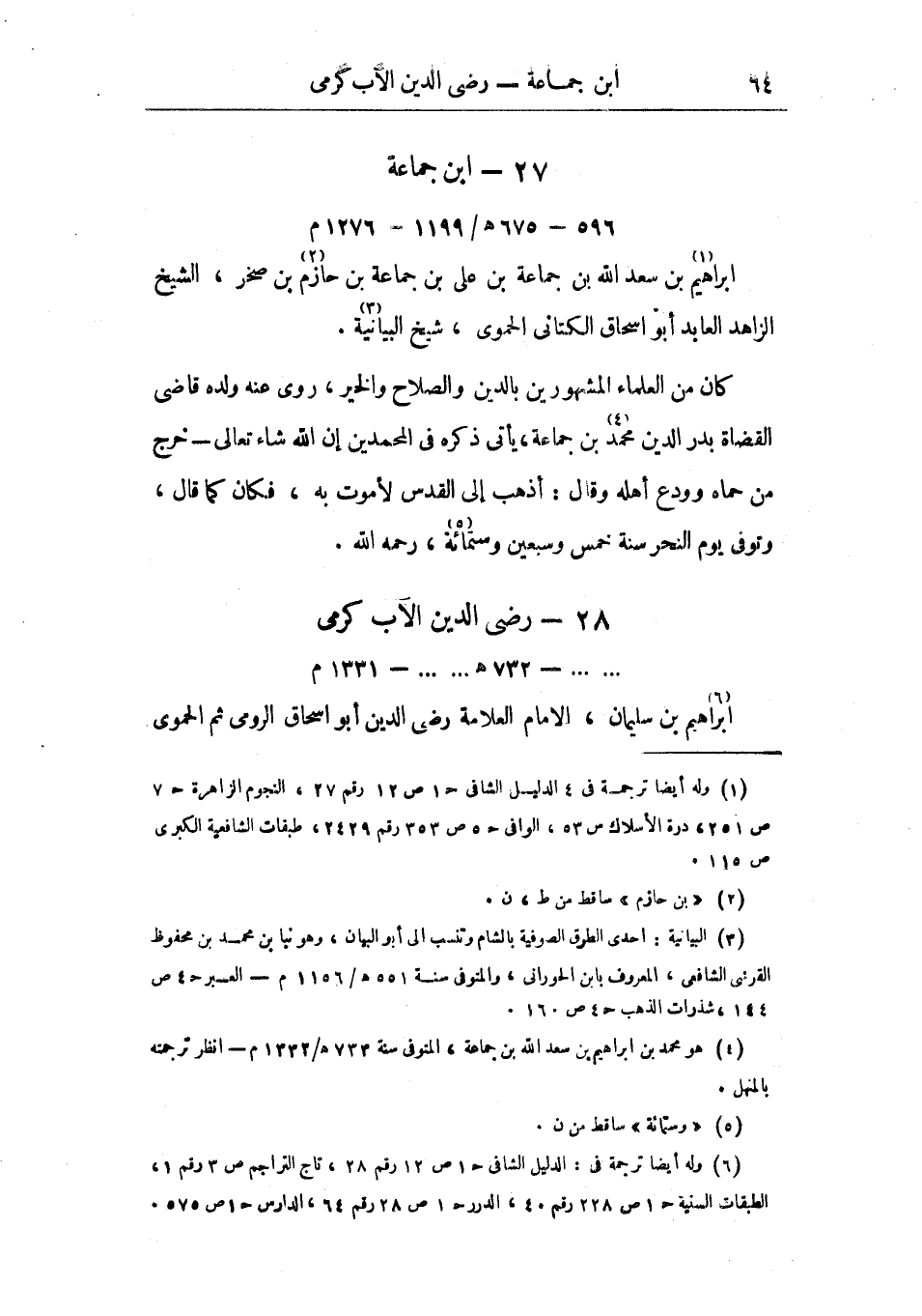إبراهيم بن سليمان، الإمام العلامة رضى الدين أبو إسحاق الرومي ثم الحموي