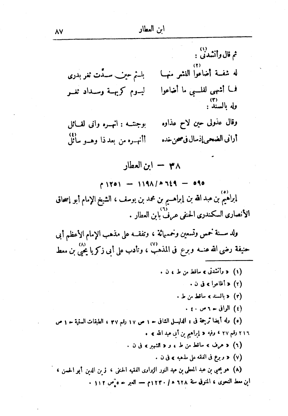 إبراهيم بن عبد الله بن إبراهيم بن محمد بن يوسف، الشيخ الإمام أبو إسحاق الأنصاري السكندري الحنفي عرف بابن العطار.