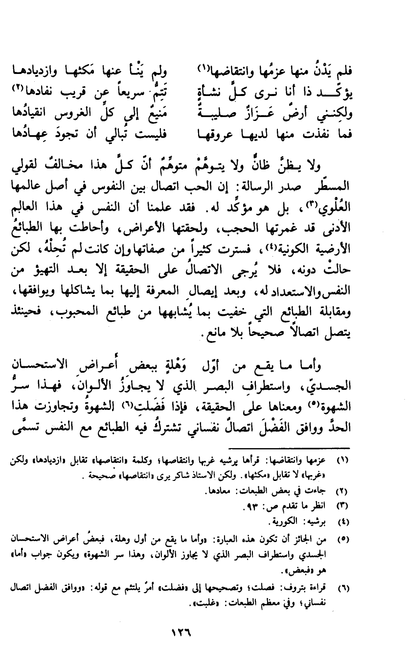 (6) قراءة بتروف: فصلت؛ وتصحيحها إلى " فضلت " أمر يلتئم مع قوله: " ووافق الفضل اتصال نفساني؛ وفي معظم الطبعات: " غلبت ".