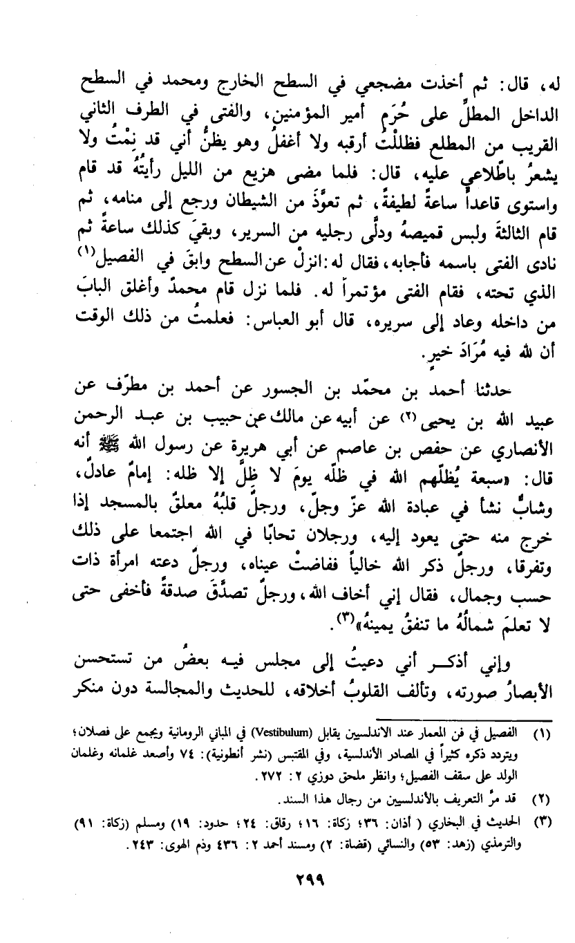 (1) الفصيل في فن المعمار عند الاندلسيين يقابل (Vestibulum) في المباني الرومانية ويجمع على فصلان؛ ويتردد ذكره كثيراً في المصادر الأندلسية، وفي المقتبس (نشر أنطونية) : 74 وأصعد غلمانه وغلمان الولد على سقف الفصيل؛ وانظر ملحق دوزي 2: 272.
