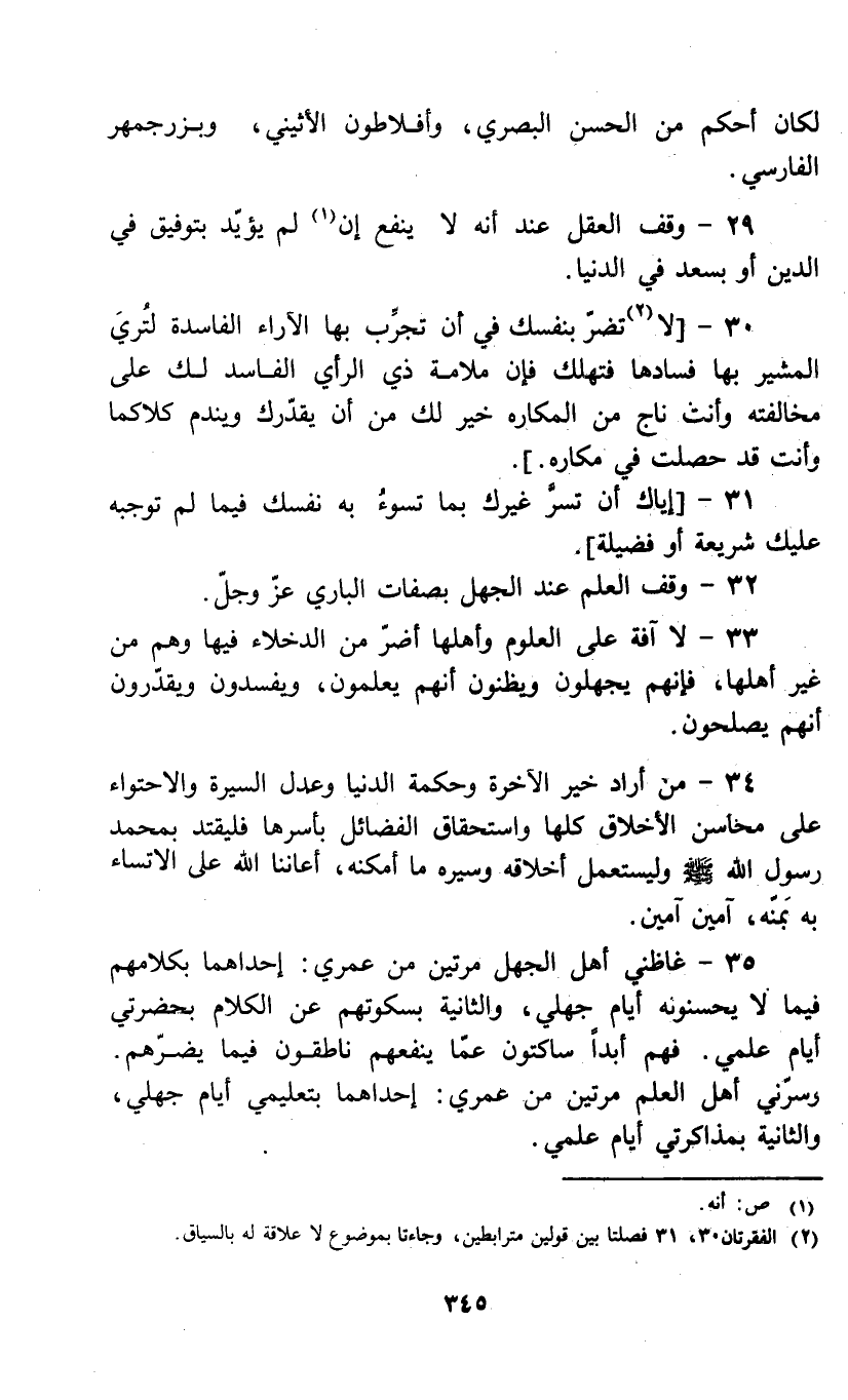 29 - وقف العقل عند أنه لا ينفع إن (1) لم يؤيد بتوفيق في الدين أو بسعد في الدنيا.