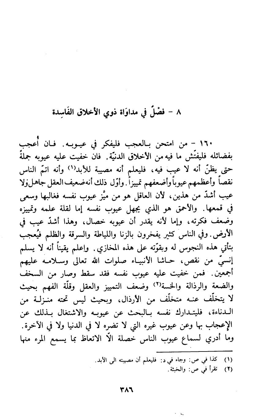 8 - فصل في مداواة ذوي الأخلاق الفاسدة