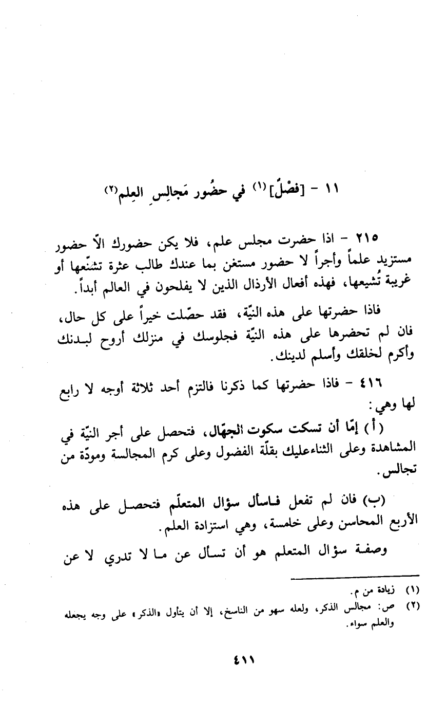 11 -[فصل] (1) في حضور مجالس العلم (2)