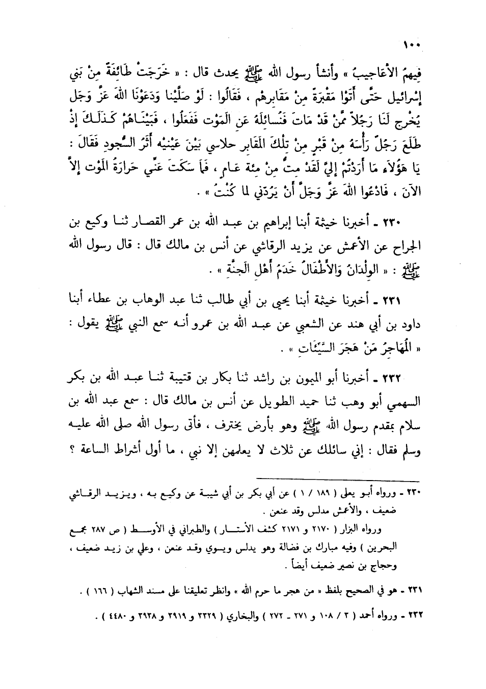 231 - أَخْبَرَنَا خَيْثَمَةُ، أبنا يَحْيَى بْنُ أَبِي طَالِبٍ، ثنا عَبْدُ الْوَهَّابِ بْنُ عَطَاءٍ، أبنا دَاوُدُ بْنُ أَبِي هِنْدٍ، عَنِ الشَّعْبِيِّ، عَنْ عَبْدِ اللَّهِ بْنِ عَمْرٍو، أَنَّهُ سَمِعَ النَّبِيَّ صَلَّى اللهُ عَلَيْهِ وَسَلَّمَ يَقُولُ: §«الْمُهَاجِرُ مَنْ هَجَرَ السَّيِّئَاتِ»